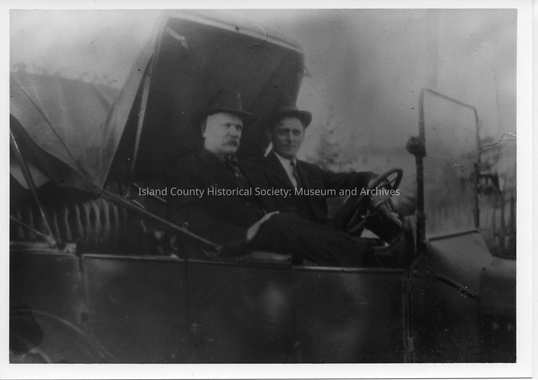 1920's. Two sheriffs in car with top partially down. Bill Gookins and ____ Mitchell.
