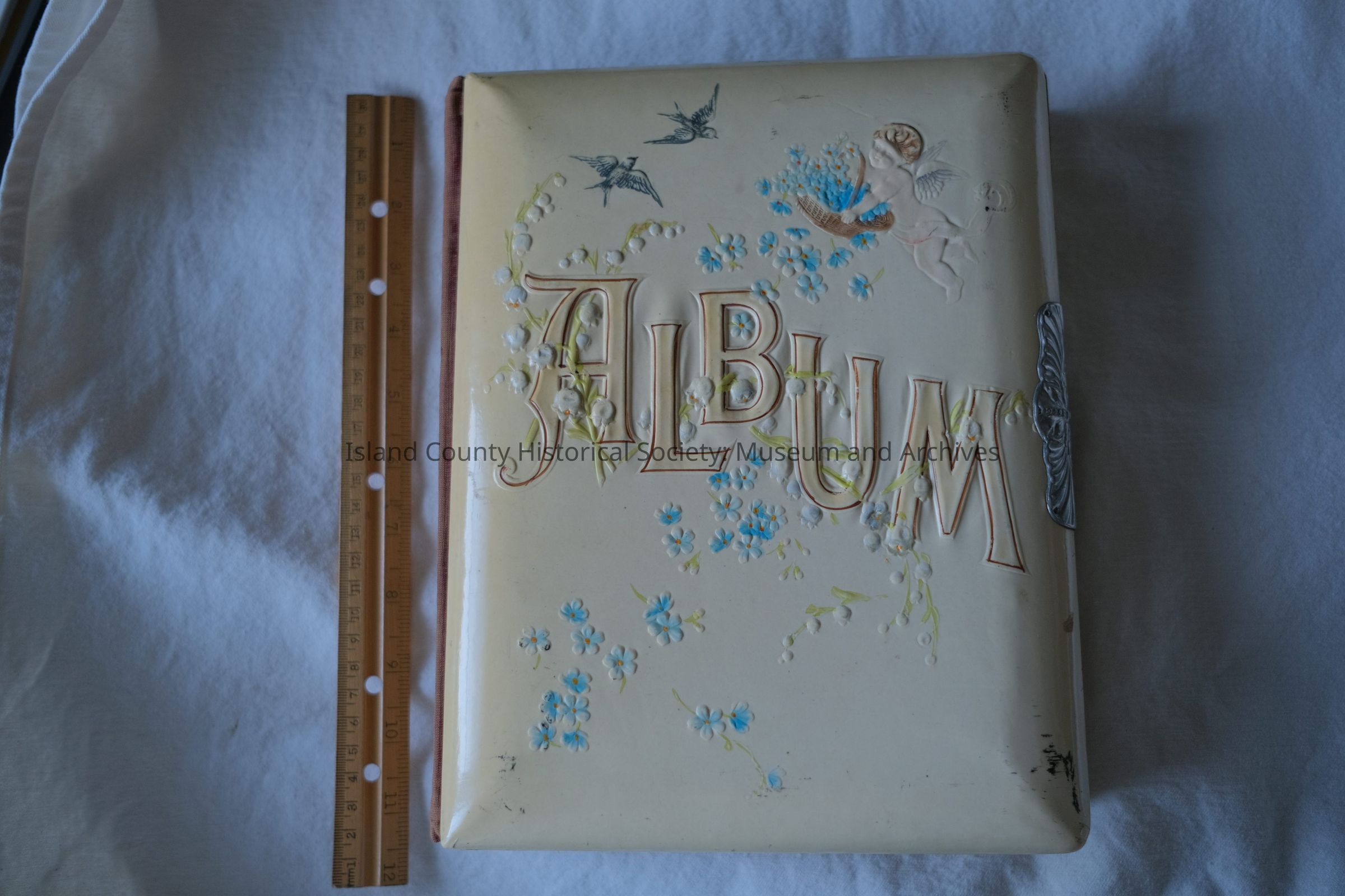 cream colored photo album with blue birds/flowers on cover - of the Cranney/Baker families