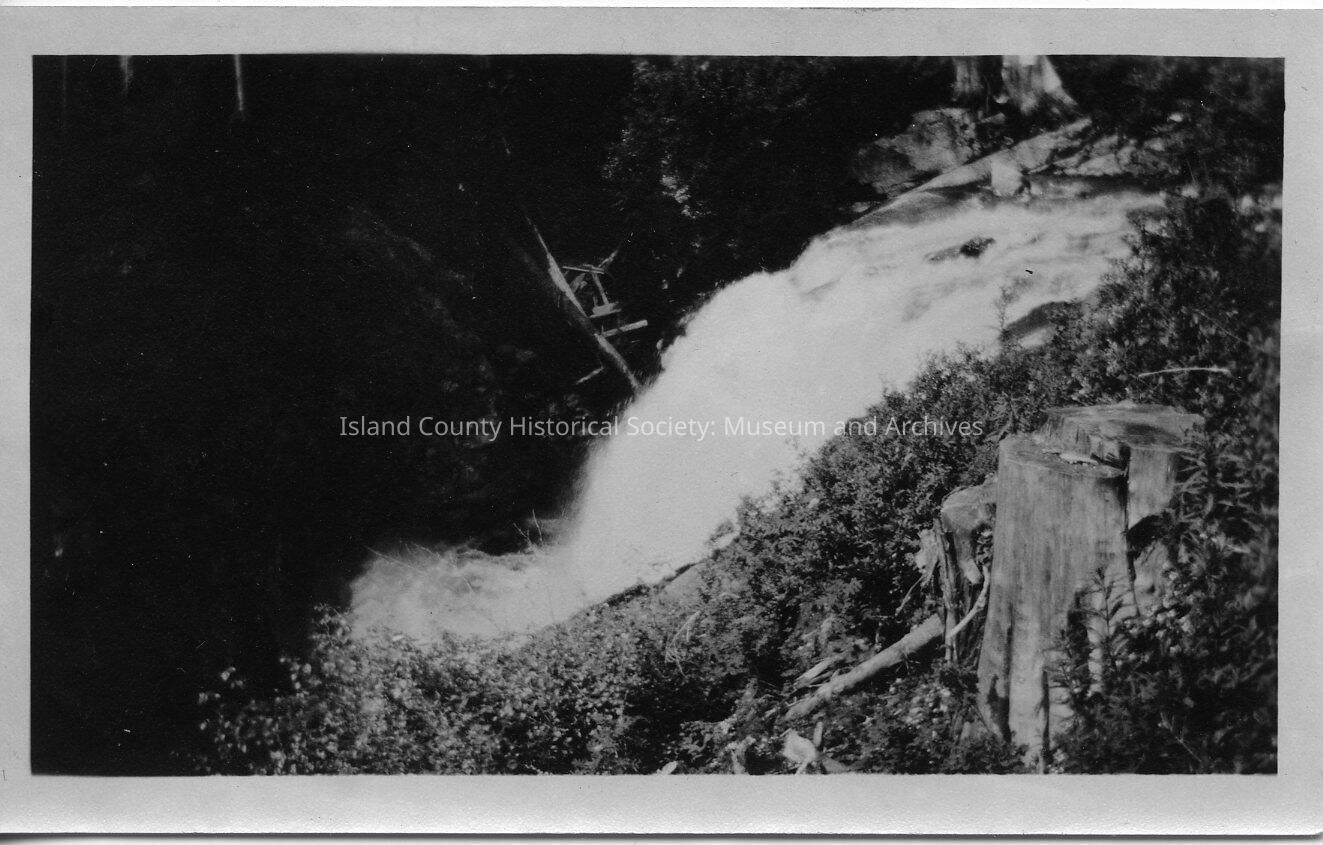 Black & white photo of waterfall. No names or date on the photo.
