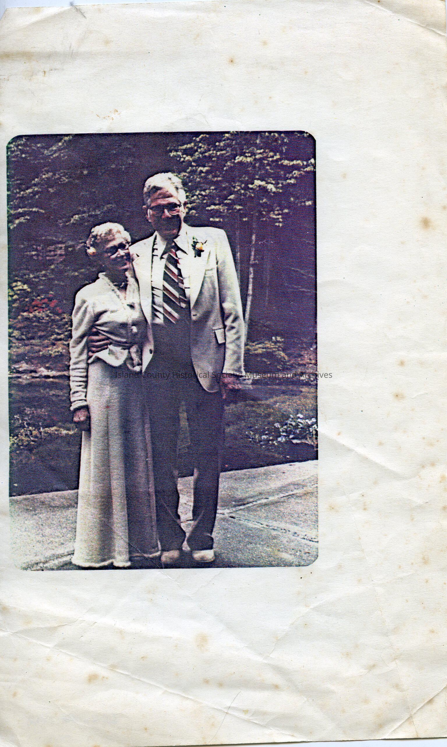 Color photo of Elizabeth Ward Fix and Russell Oro Fix on their 50th wedding anniversary. Written on the back: "Elizabeth Ward Fix & Russell Oro Fix 24 June, 1981 for their 50th Wedding Anniversary"