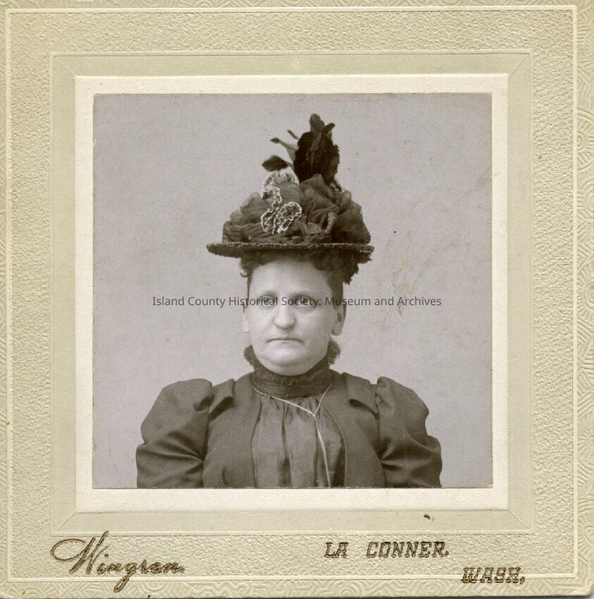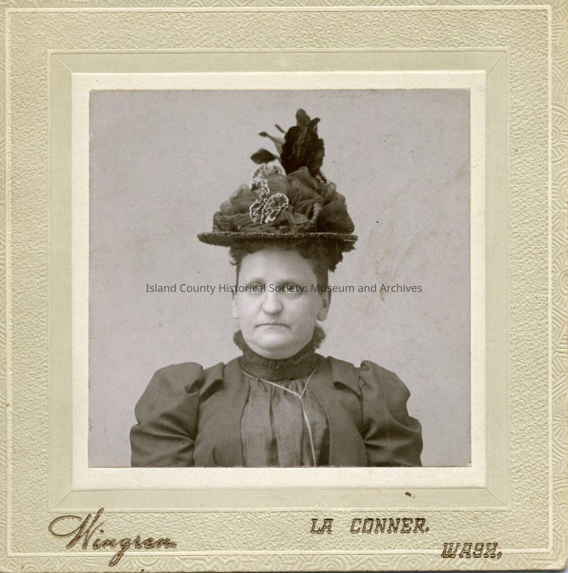 Portrait of Grace Alexander wearing a dress and a large hat.