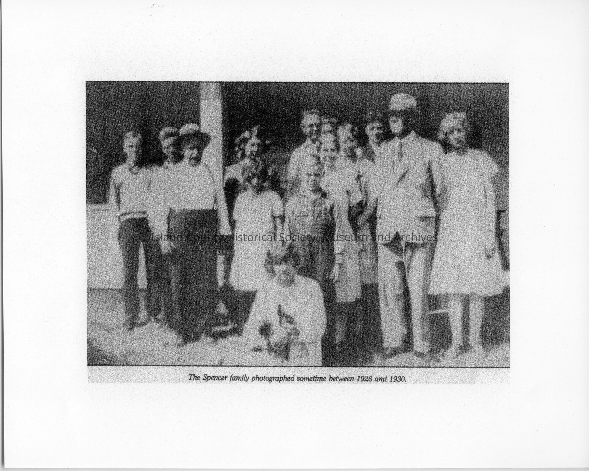 A photo of a group of people, family. Type below the photo is "The Spencer family photographed sometime between 1928 and 1930."