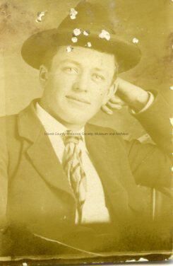 Minature portrait of Herbert Leslie Benson, wearing a suit and hat. On back: Hallie Benson
