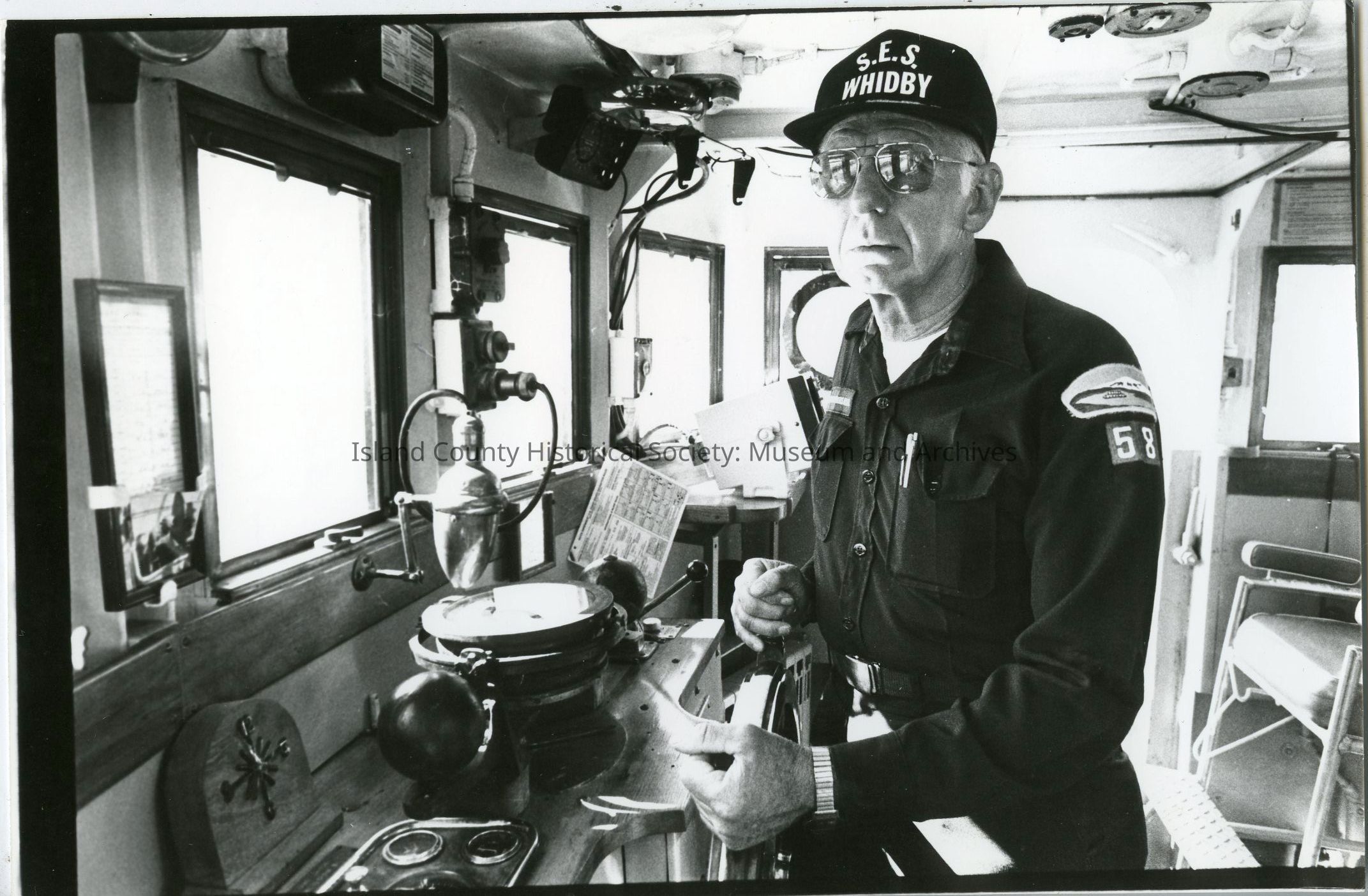 Photograph of Captain Roger Sherman aboard the S.E.S. Whidby, c. 1997. Photo by Jim Davidson.Photograph Details
