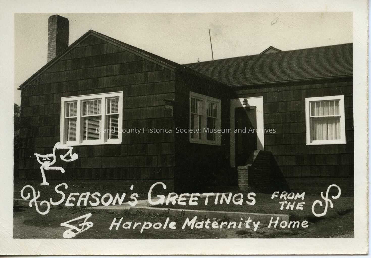 Black and White Season's Greetings photograph from Harpole Maternity Home. The photo was in Courntey Ann (Fields) Glau baby book and written on the back is: