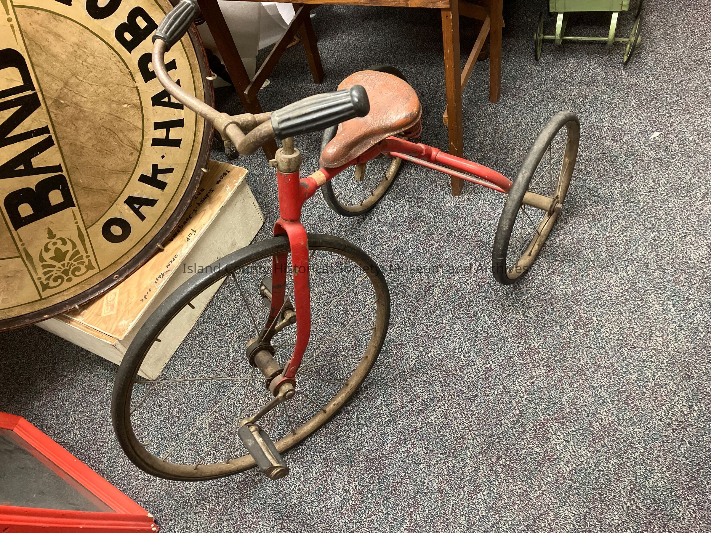 Red iron child's tricycle.
