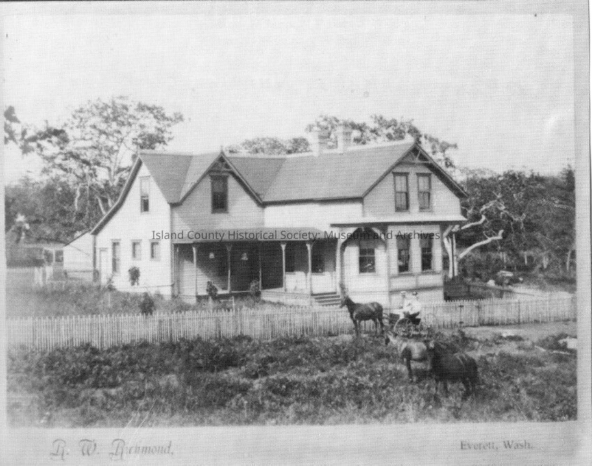 Home of LP Byrne in Oak Harbor. LP and Katie Nunan daughter of Elizabeth and Thomas Nunan Daughter Pauline in buggy. Elizabeth McCrohan Thomas.