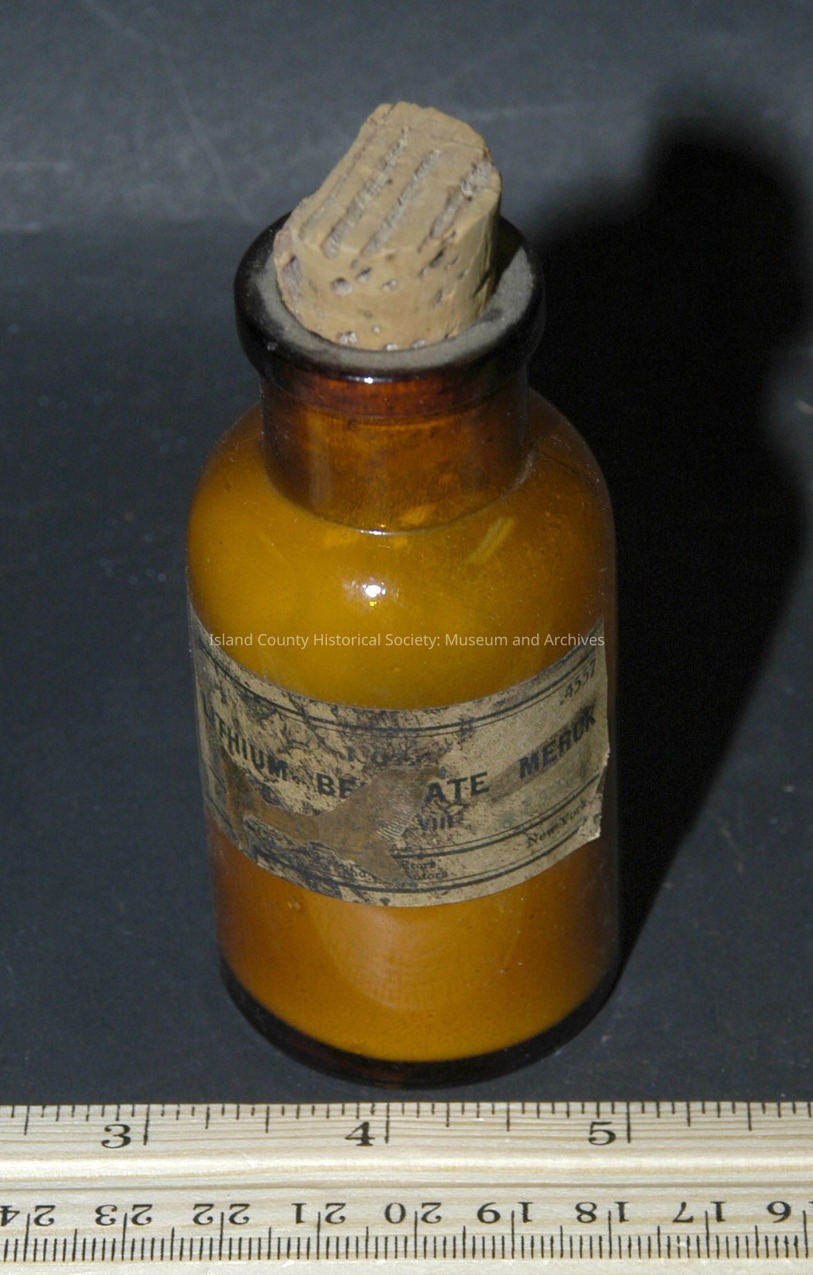 Brown bottle 3 3/8" with cork Merck - Lithium Benzoate powder - full