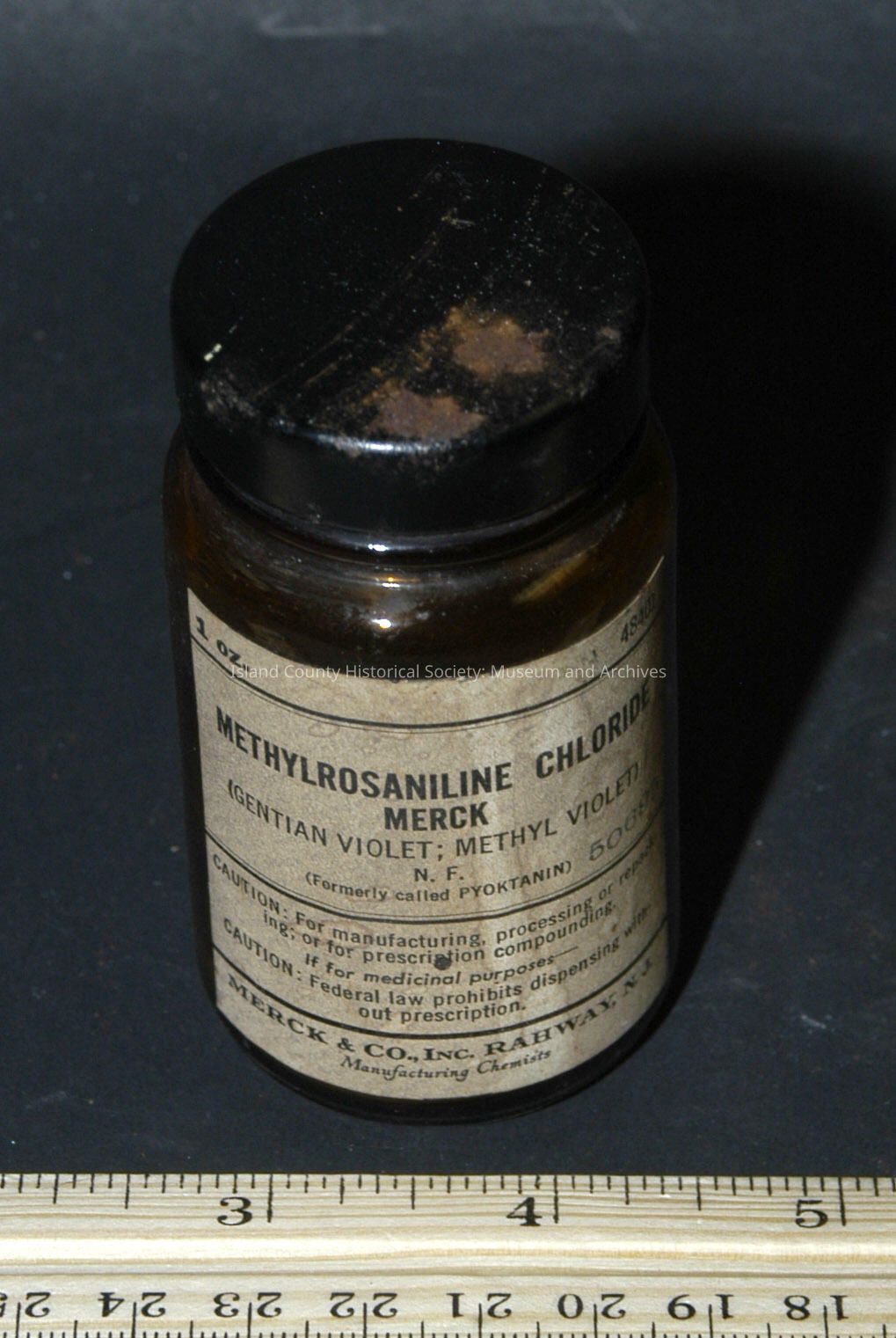 Brown bottle 3" with cap Merck - Methylrosaniline Chloride 1/5 full