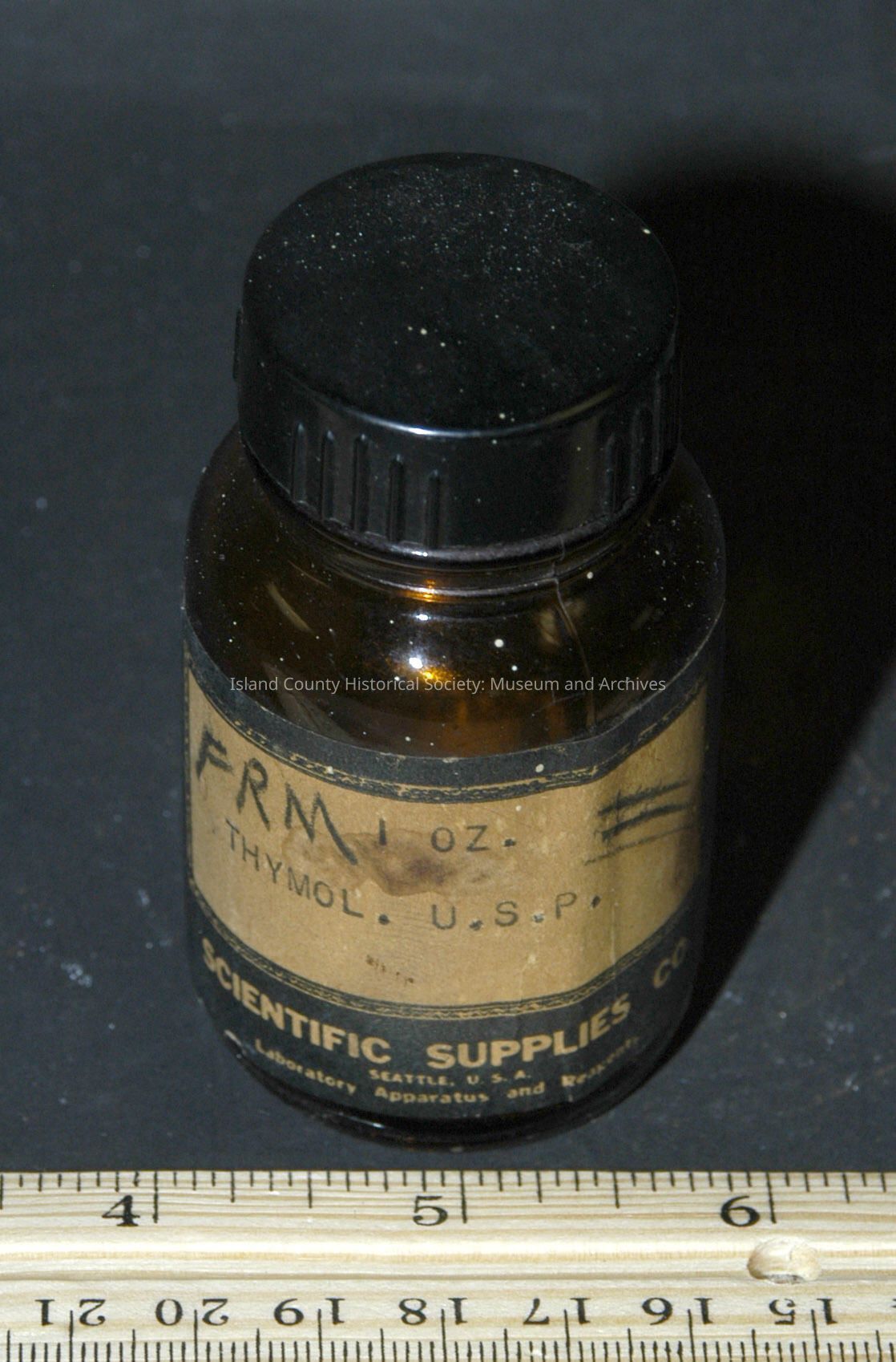 Brown bottle 3" with cap Scientific Sup. Co - Thymol 1/8 full