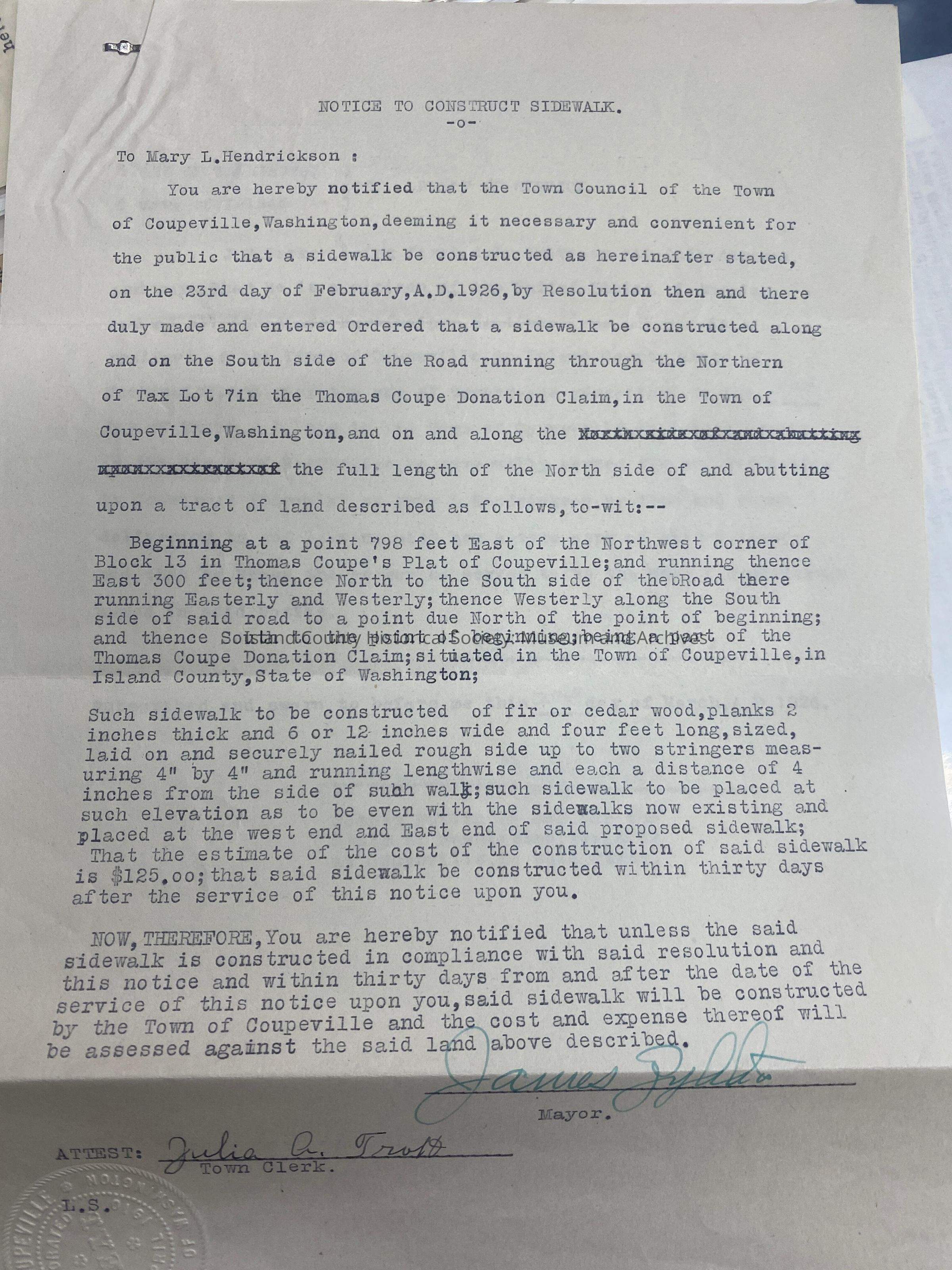 Notice to Construct Sidewalk