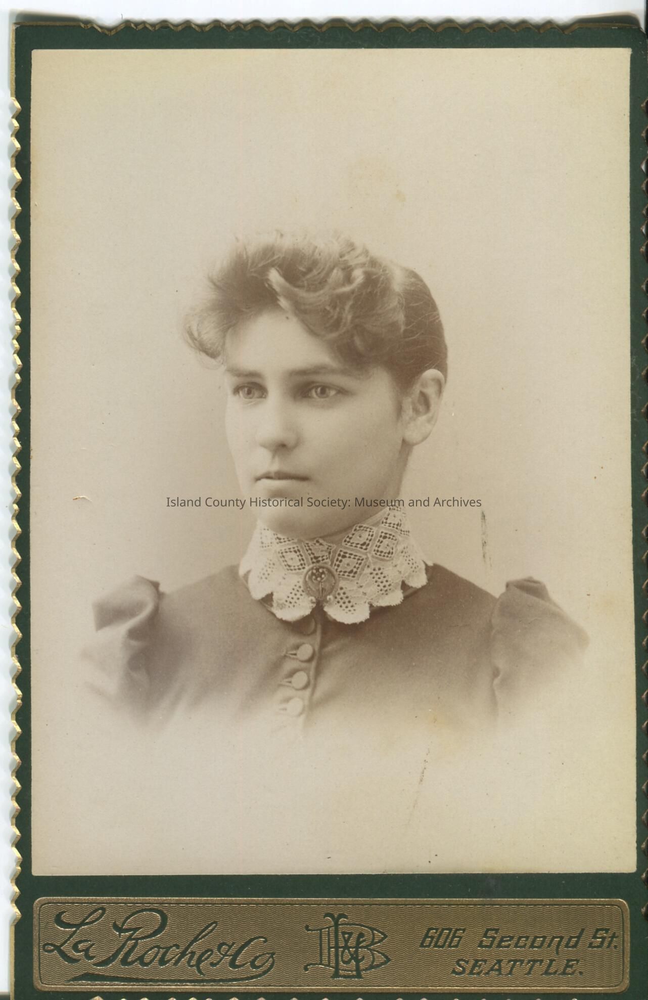 The studio name, LaRoche & Co. 606 Second St., Seattle, is embossed on the bottom of the cardstock.Made/Created