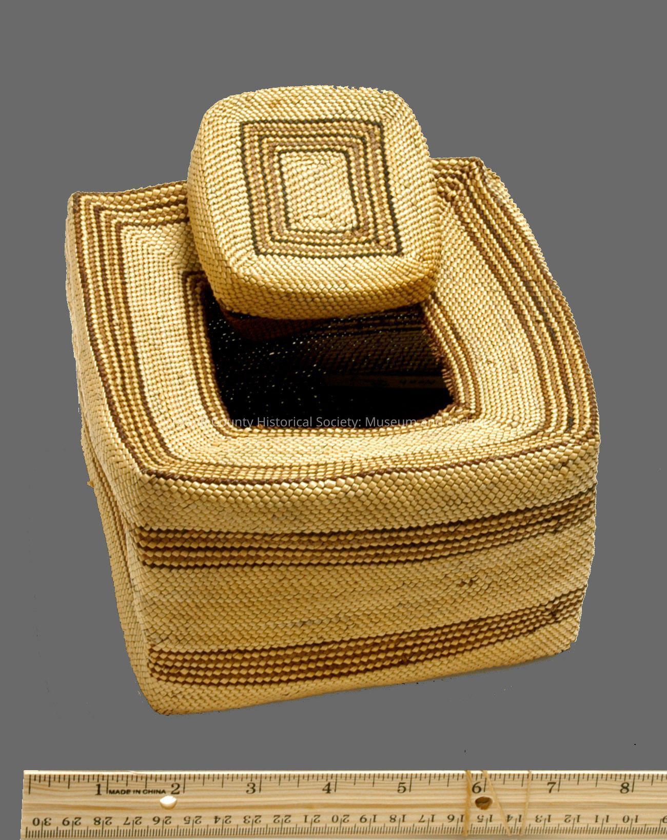 square basket with fine brown banding, lid; needs repair; Neah Bay areaCollection