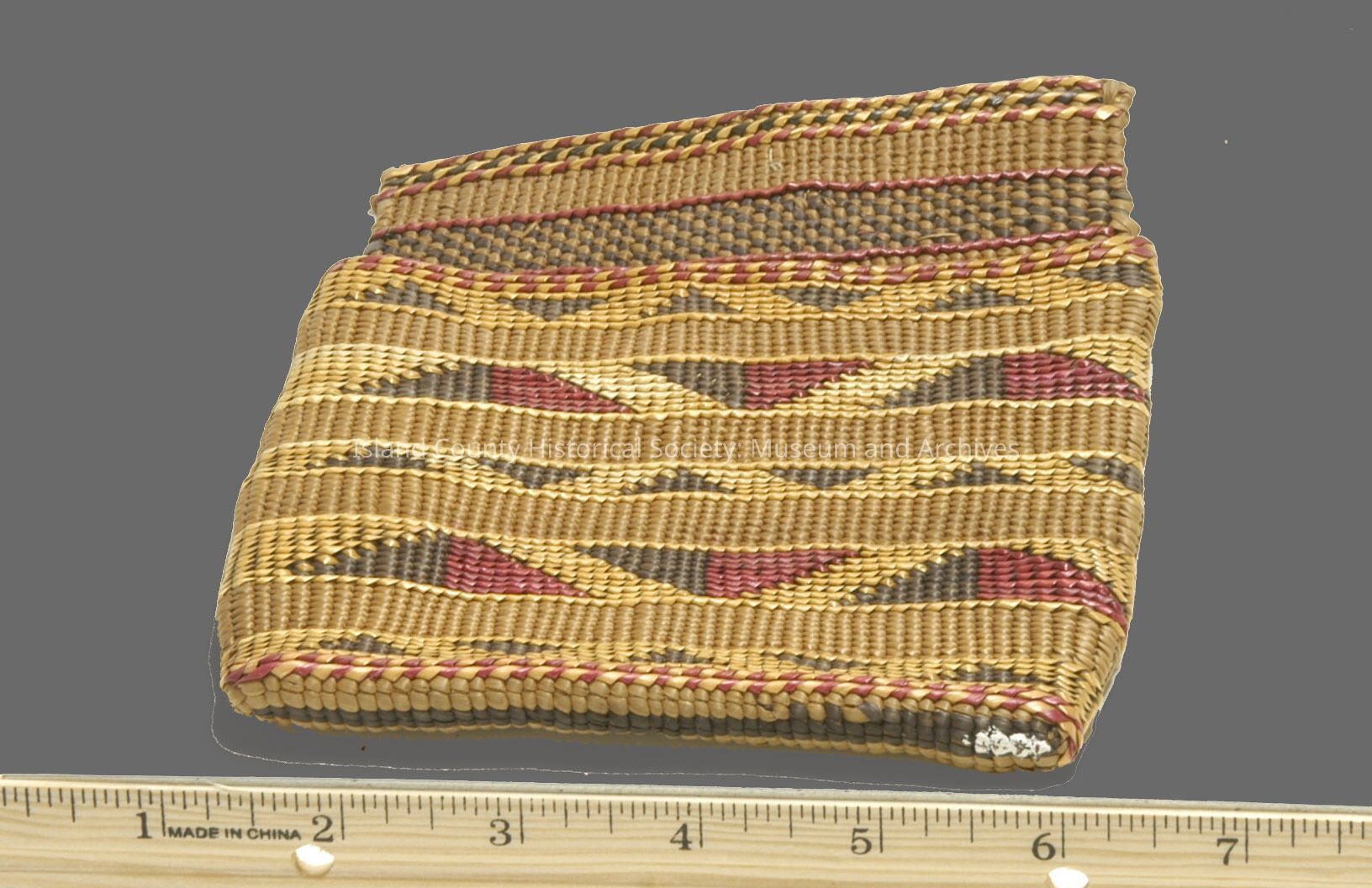 woven pouch with red and black triangles, possibly berry basket.Collection