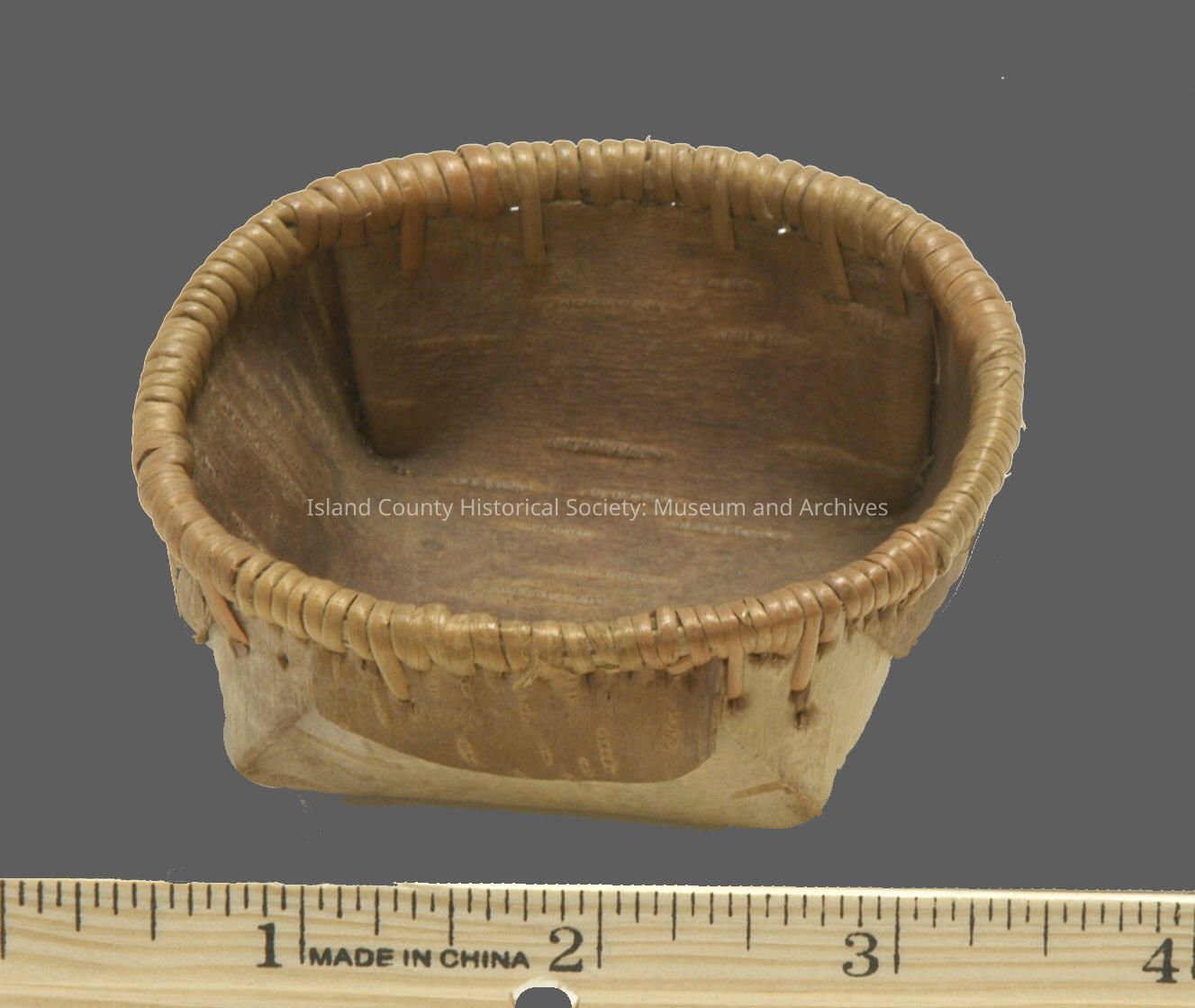 small black birchbark, squarish basket; Anvik, AlaskaCollection