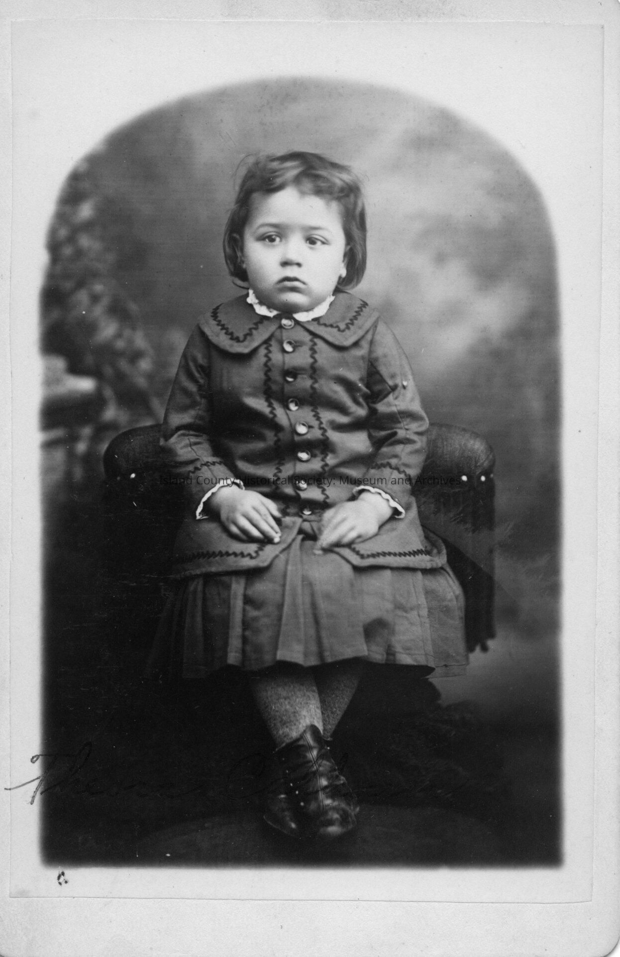 Portrait of Theora Calhoun Carter as a toddler wearing a dress and coat.