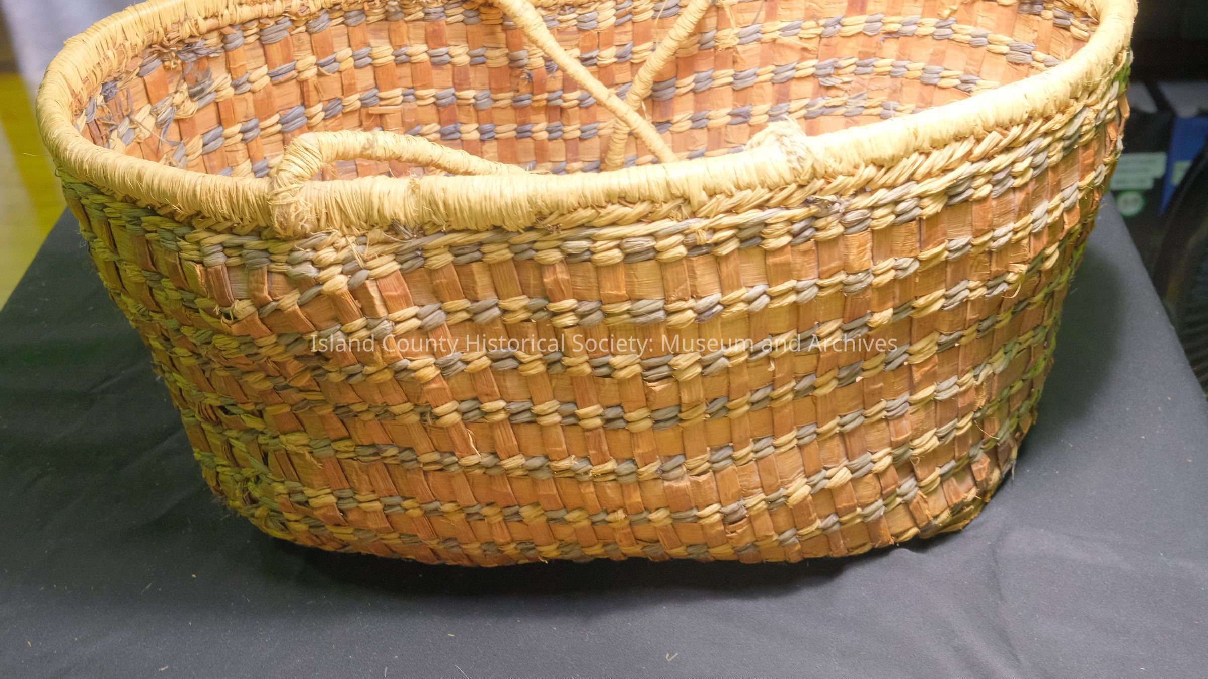 large light brown basket with fine lines of cream, black stripings. Fraser River, CanadaCollection
