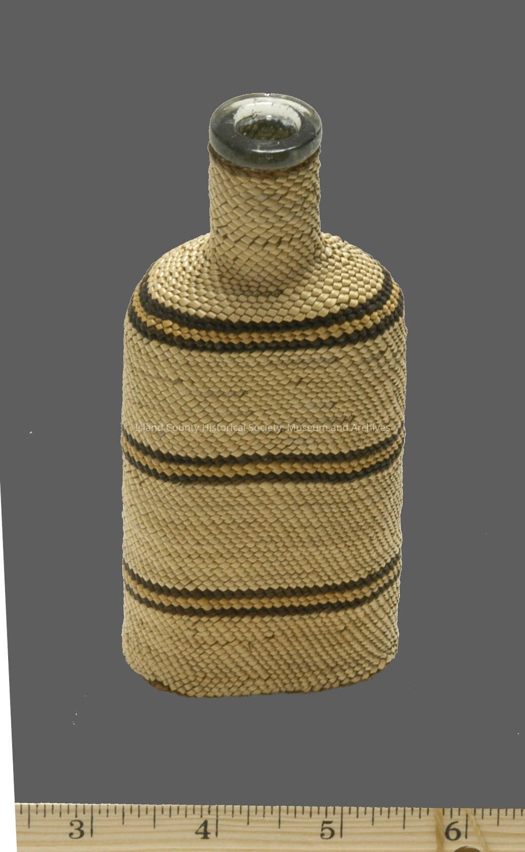 covered bottle, 7" orange, brown, green design; AlaskaCollection