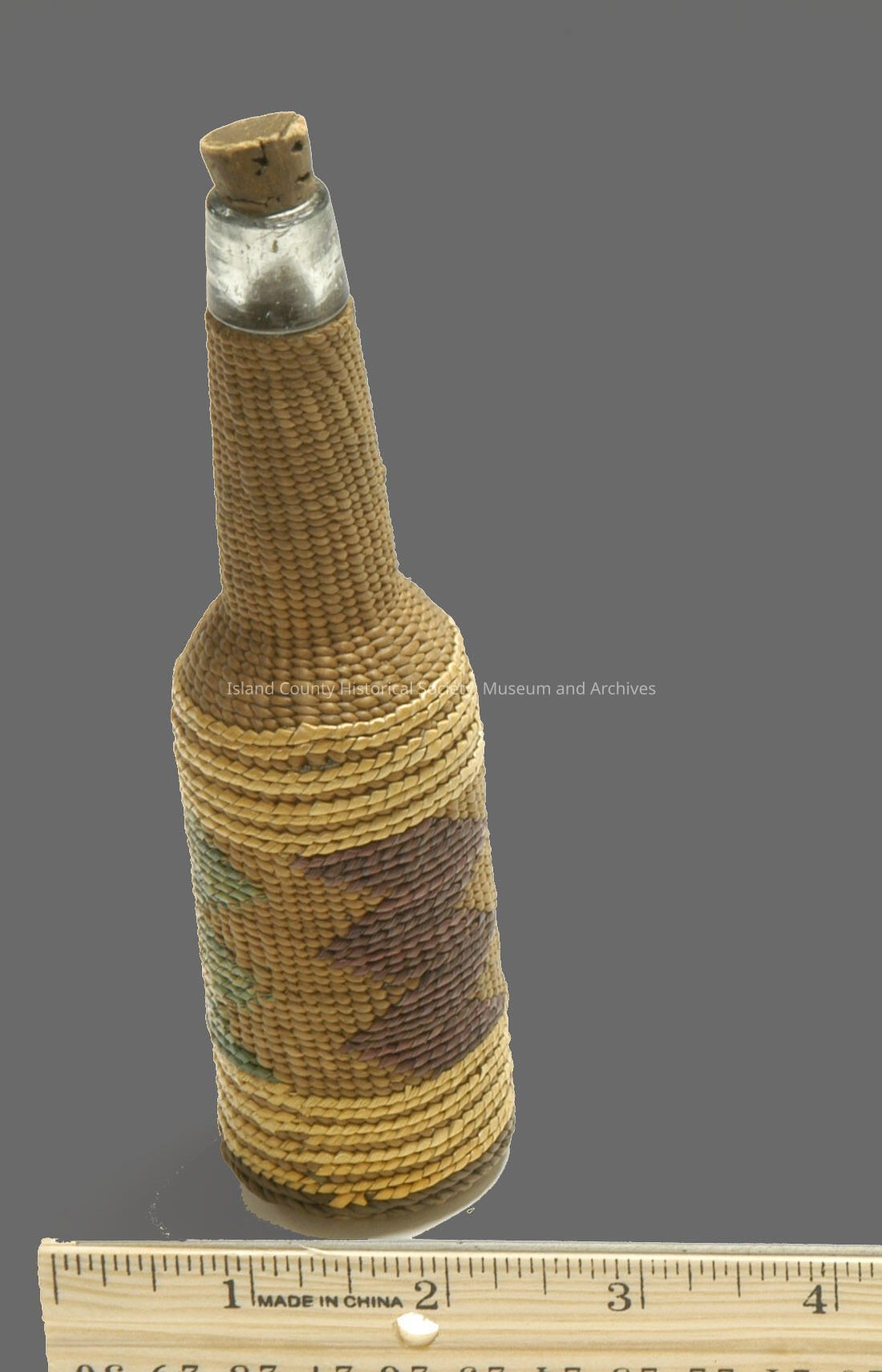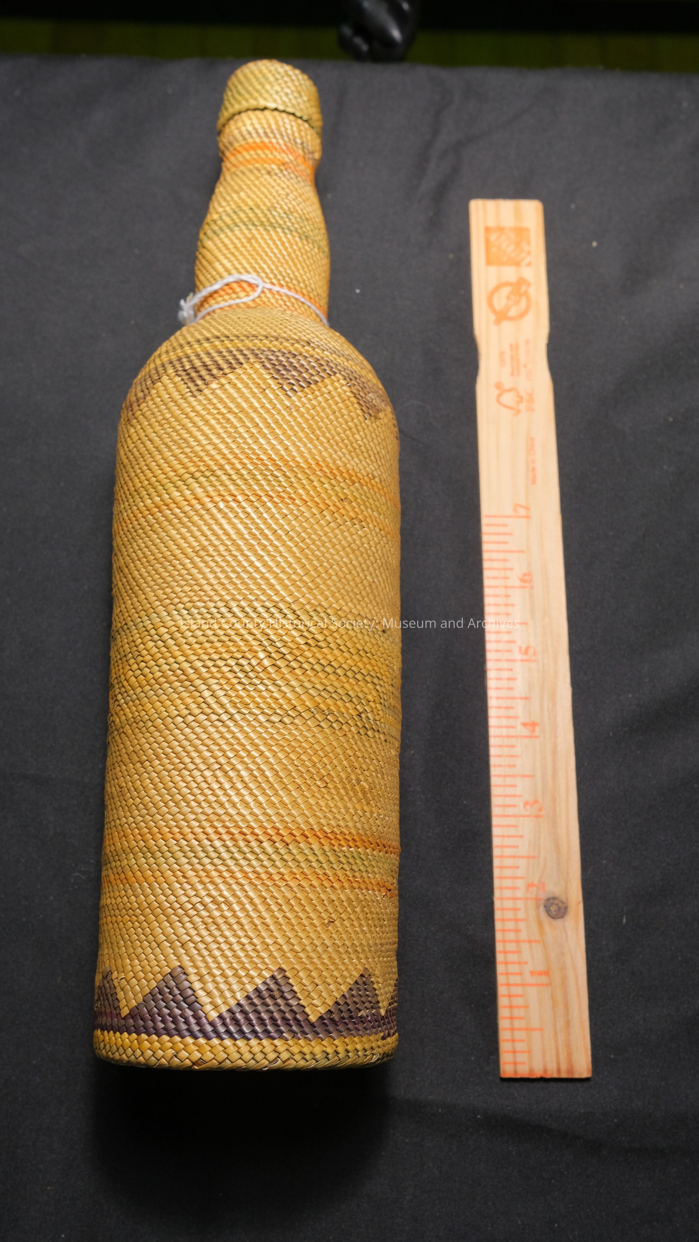covered bottle, 7" orange, brown, green design; AlaskaCollection