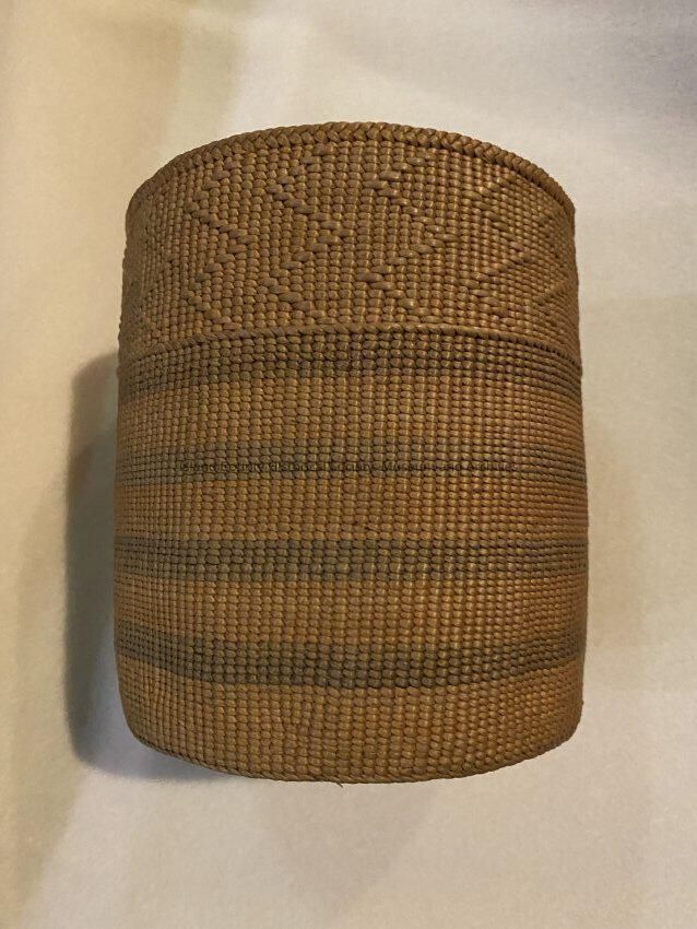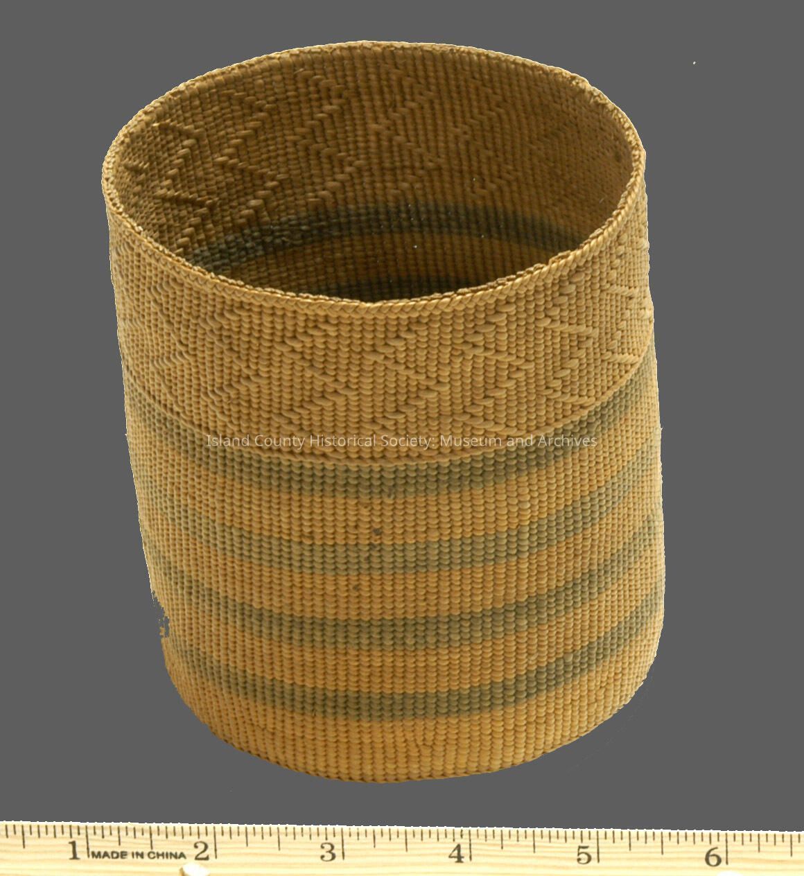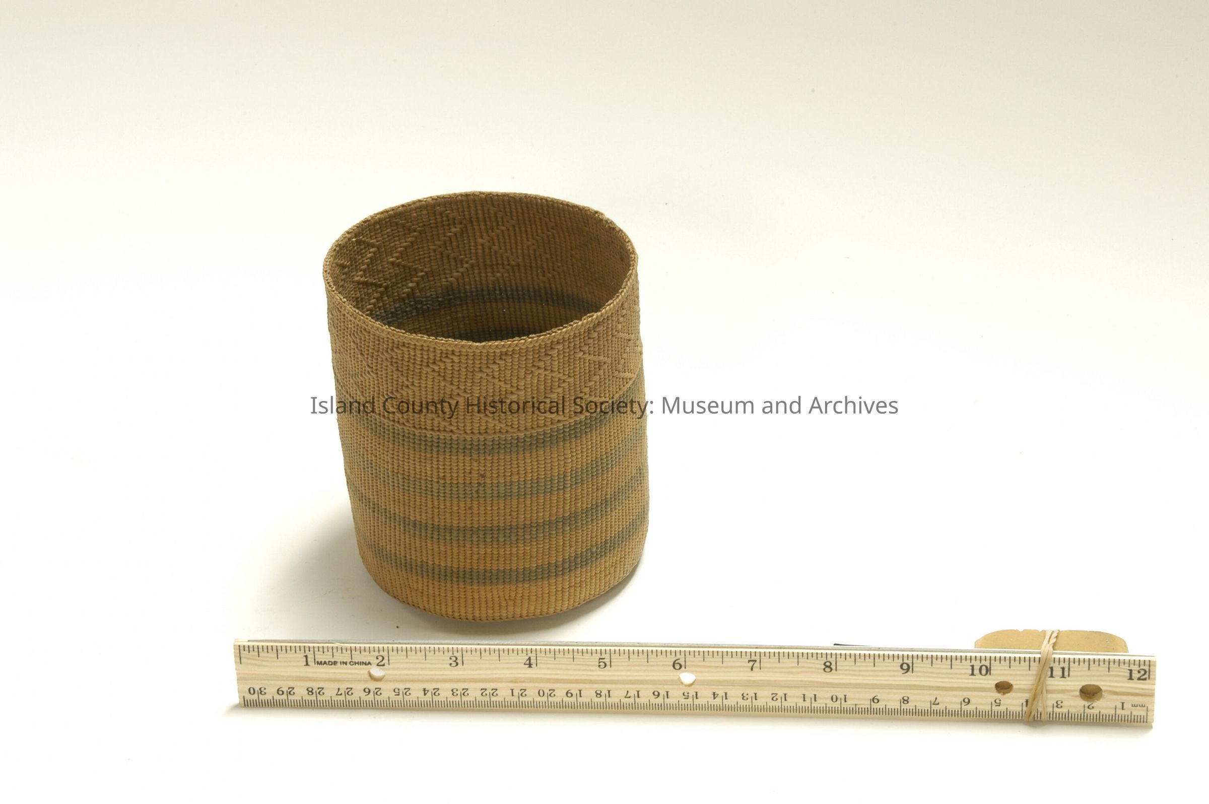 natural basket - 4 green stripes, zigzag pattern woven in top; Bella CoolaCollection