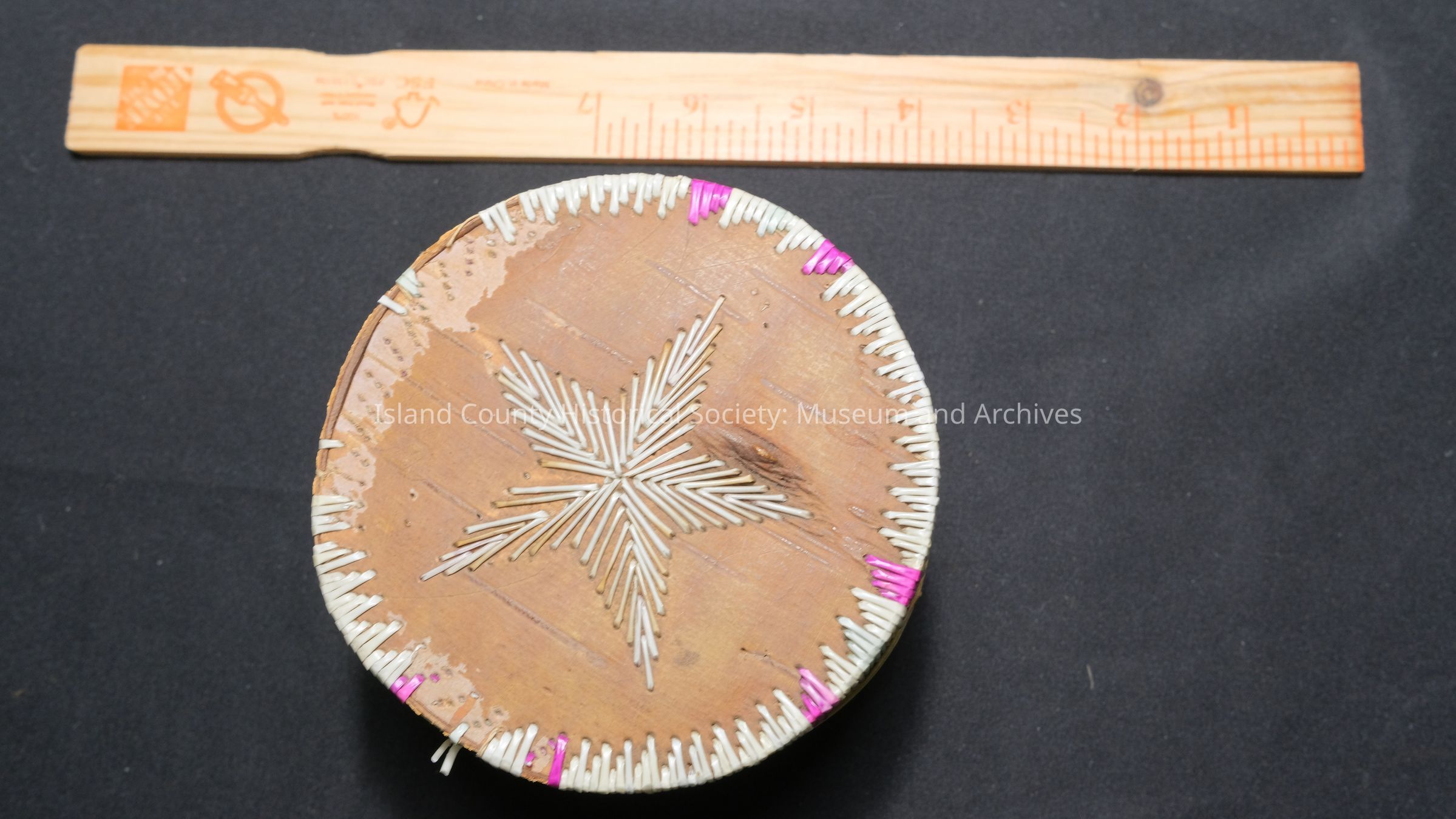 birchbark and porcupine quill round basket