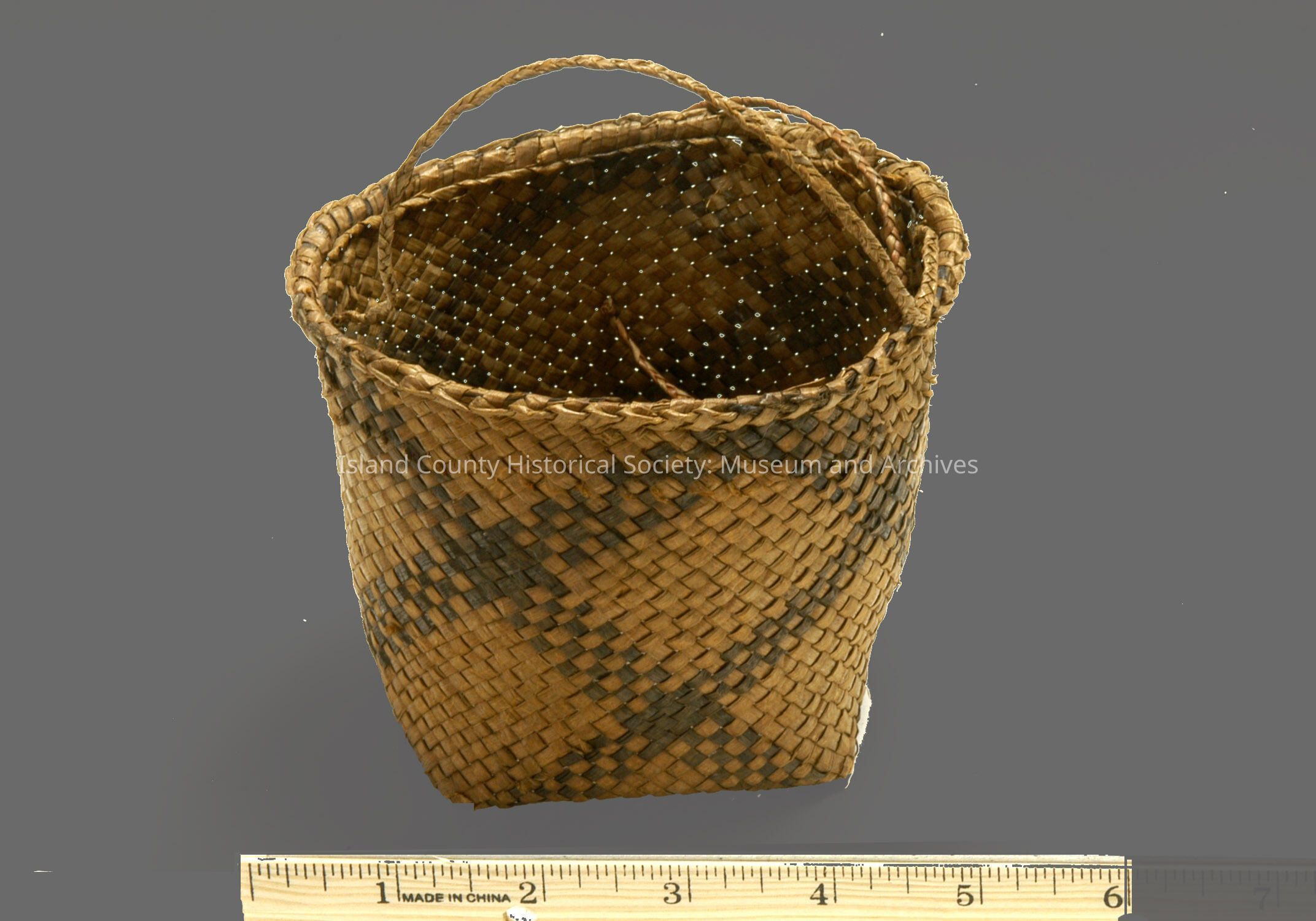 cedar diagonal weave - broad bands - handle, basket; SkagitCollection