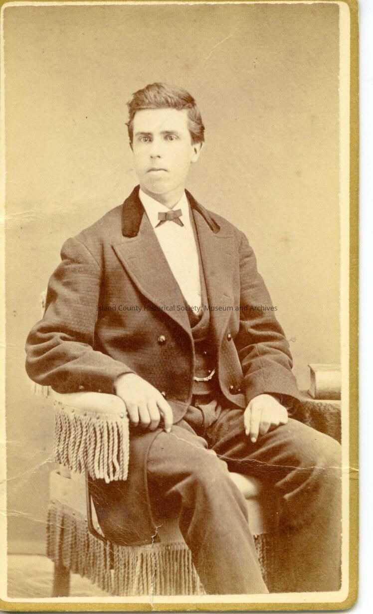 Portrait of Alvin W "A.W." Cook seated wearing a suit and tie and well groomed. From the At 2225-1 entry: Alvin W. Cook. Note on back of photo reads "Alvin Cook. Coupe # 13. Mary Coupe Coupeville. May 30, 1873"
