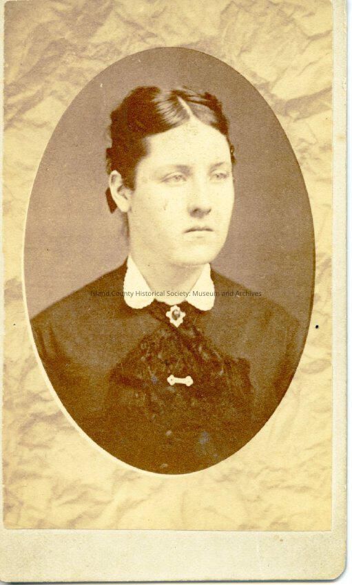 Portrait of an unidentifid woman wearing a dark dress with her hair pulled back.