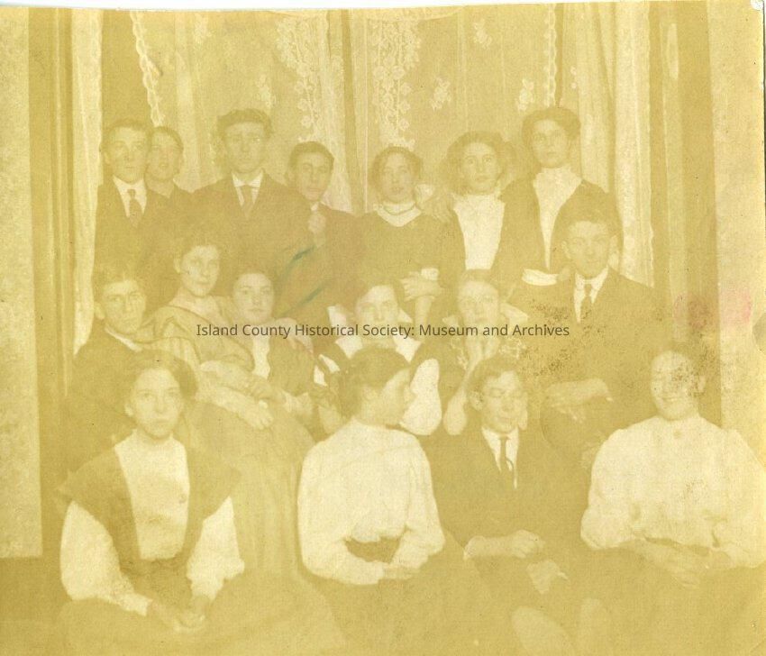 Group of unidentified men and women posed together.