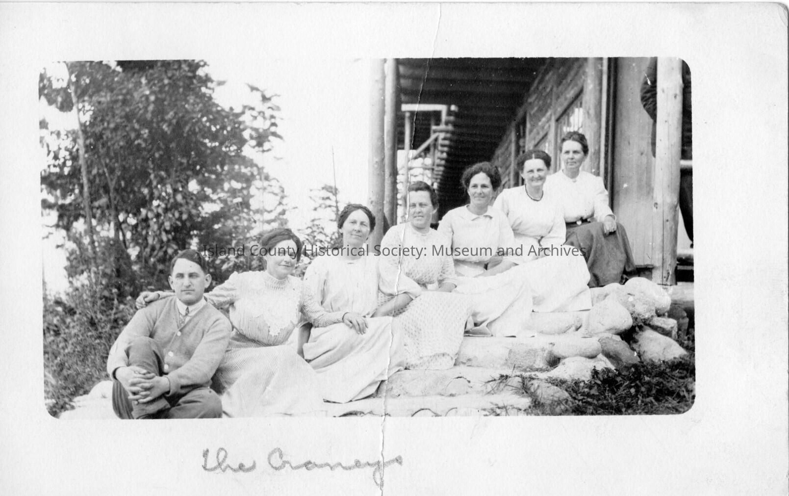 The Craneys friends of Alexander Noel Corbin Jr and wife Stella Corbin, Coupeville around 1920. The group is lined up on steps in an ascending line.