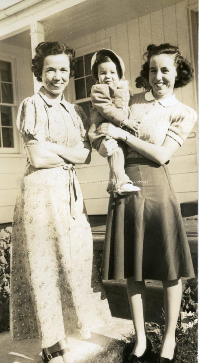 "Betty, Ann and Jo Jeffers" Ann is standing next to Jo Jeffers who is holding Noelle, Betty is not seen in the photo. At the Pickard's in Seattle. Armistice Day 1940.