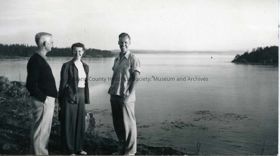 "Dad, Roberta. and Bud" Alexander Noel Corbin Jr, Roberta and Bud son of Melville Corbin all standing on the beach.