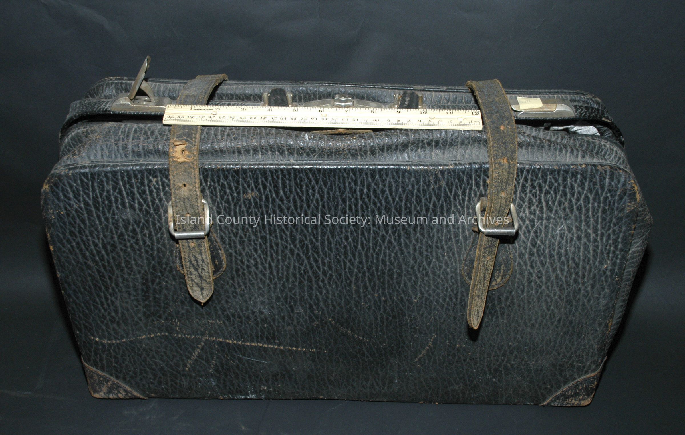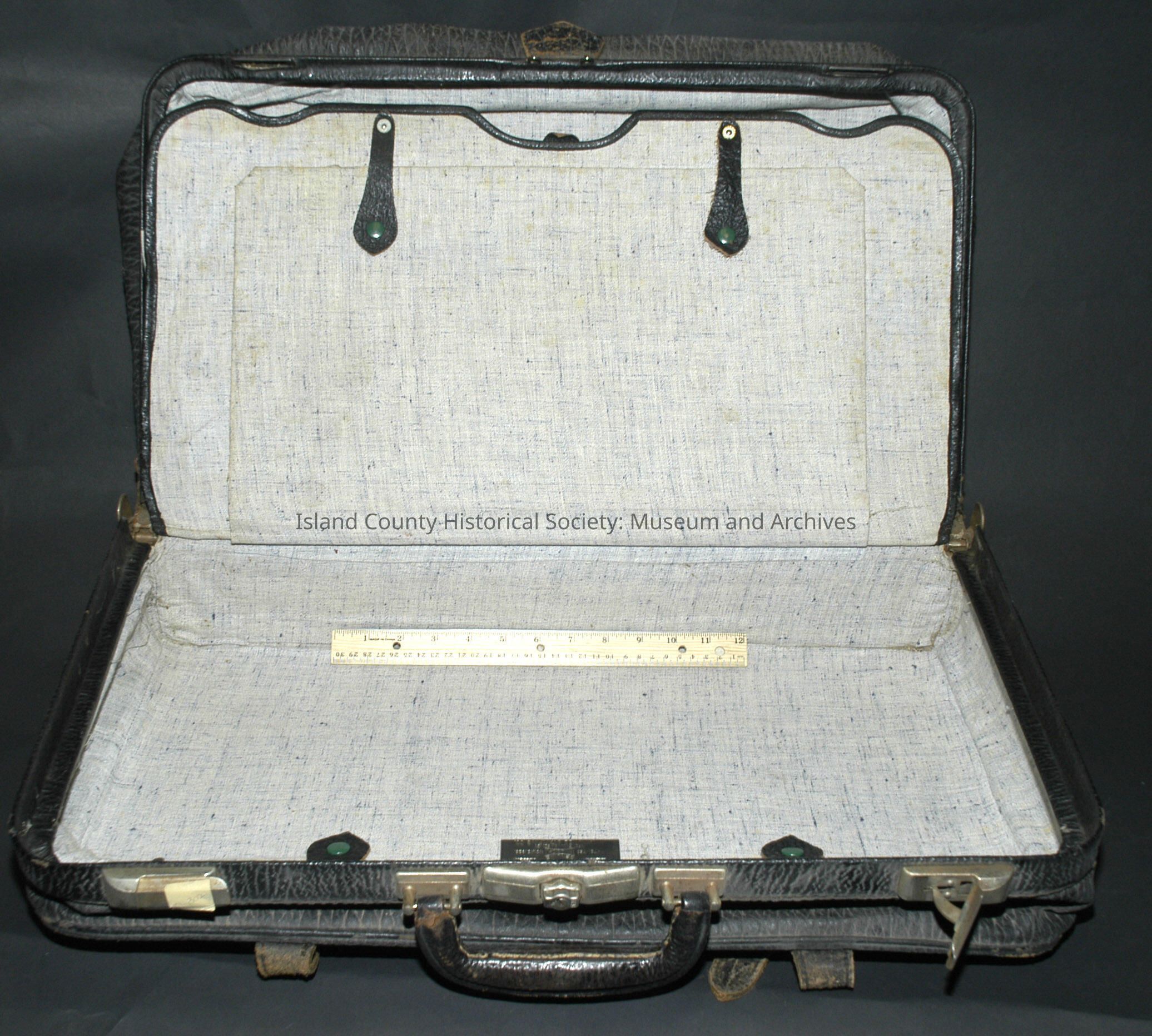 black leather suitcase