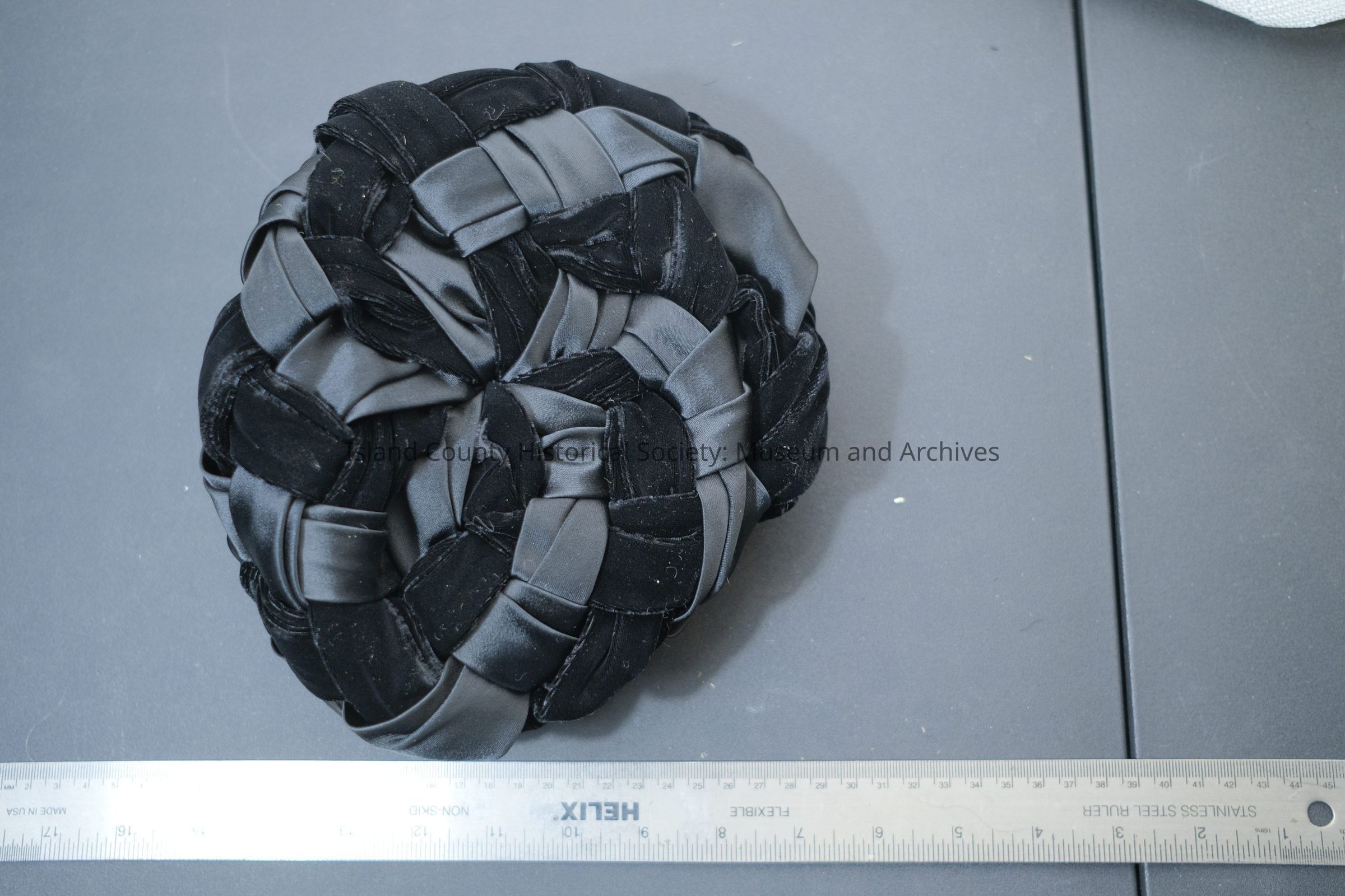 Black velvet and satin braided hat