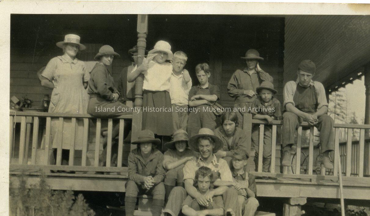 Aunty Mary is on the far left. Momma, Elizabeth Anderson has her arm around the pole and the other arm around Walter Autio. The bottom of the porch is wide open denoting the picture was taken soon after the house was built.