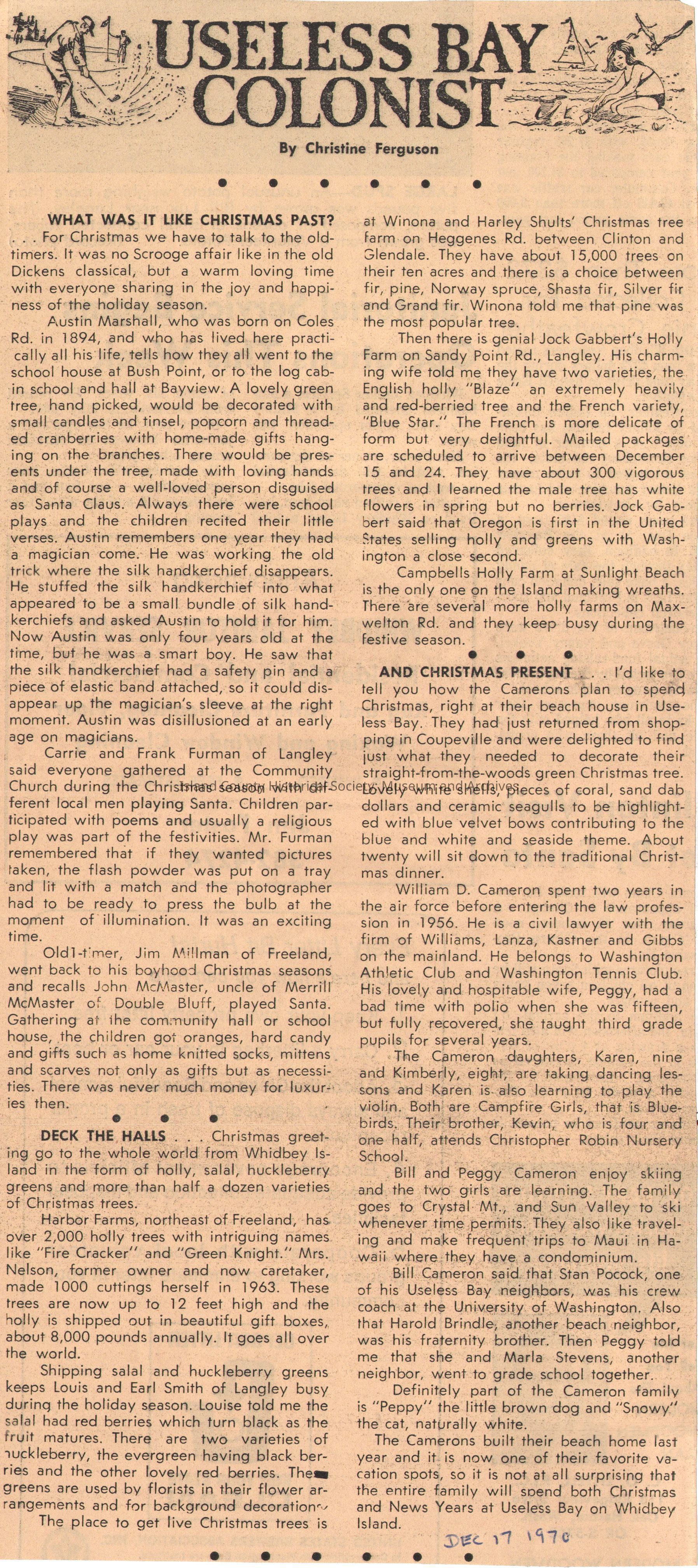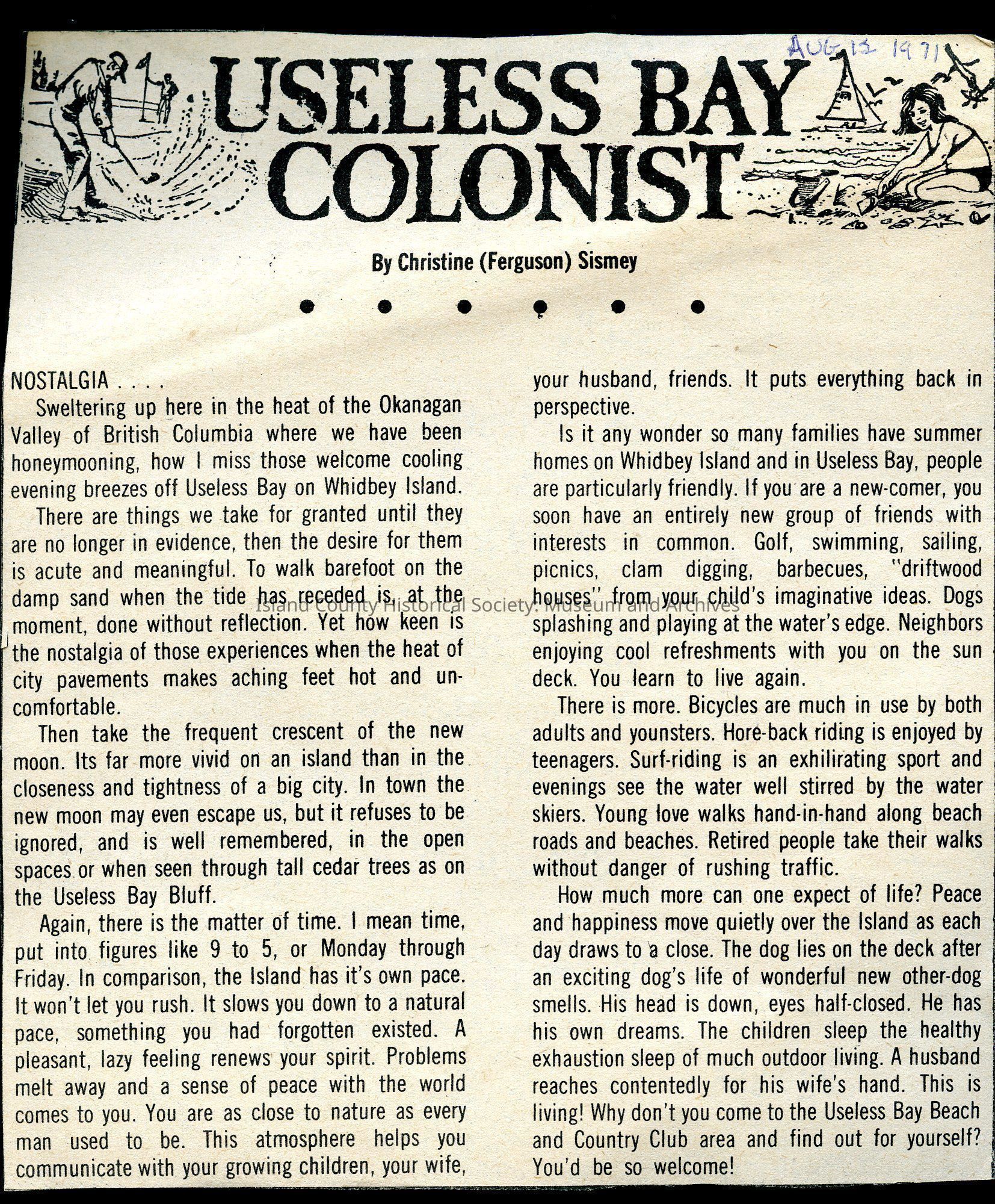 collection of news clippings titled "Useless Bay Colonist"Publication Details