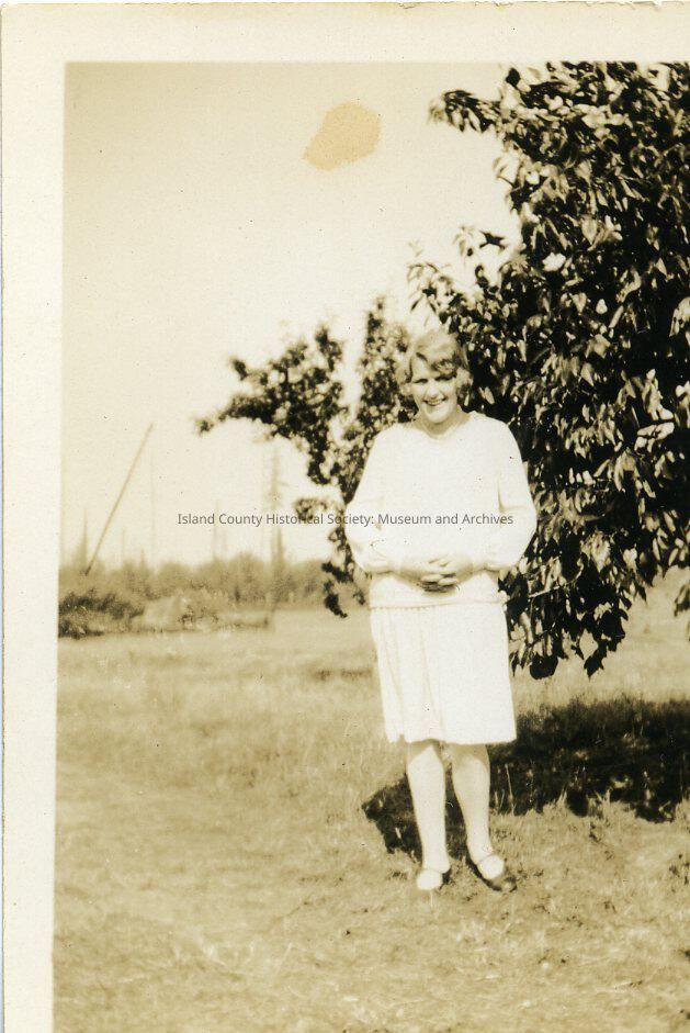 Elizabeth Sandstrom Anderson standing infront of the prune tree. Photo is looking north. 1928