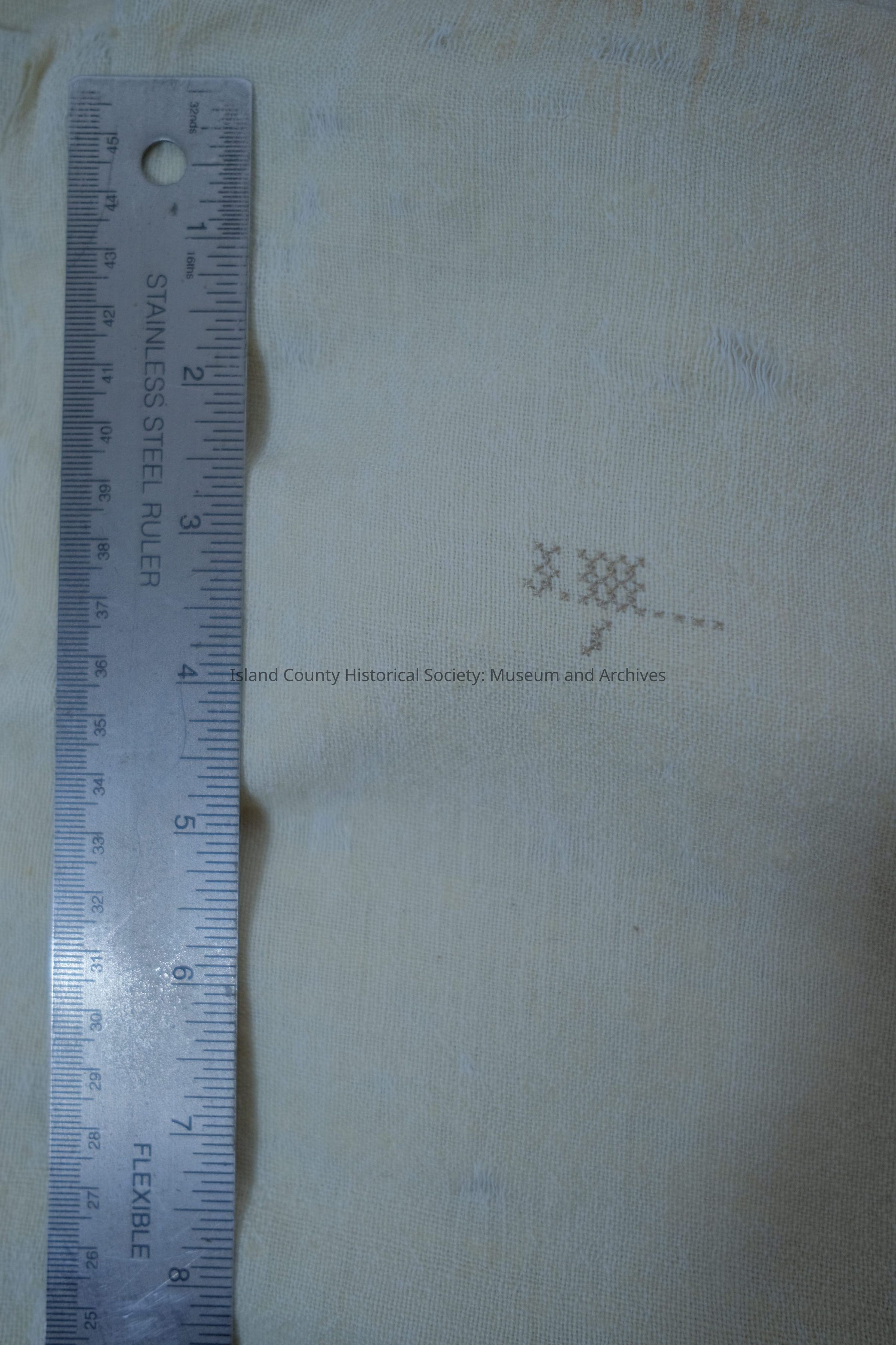 Blanket - sheer wool, hand woven, "J.M." cross stitched on end