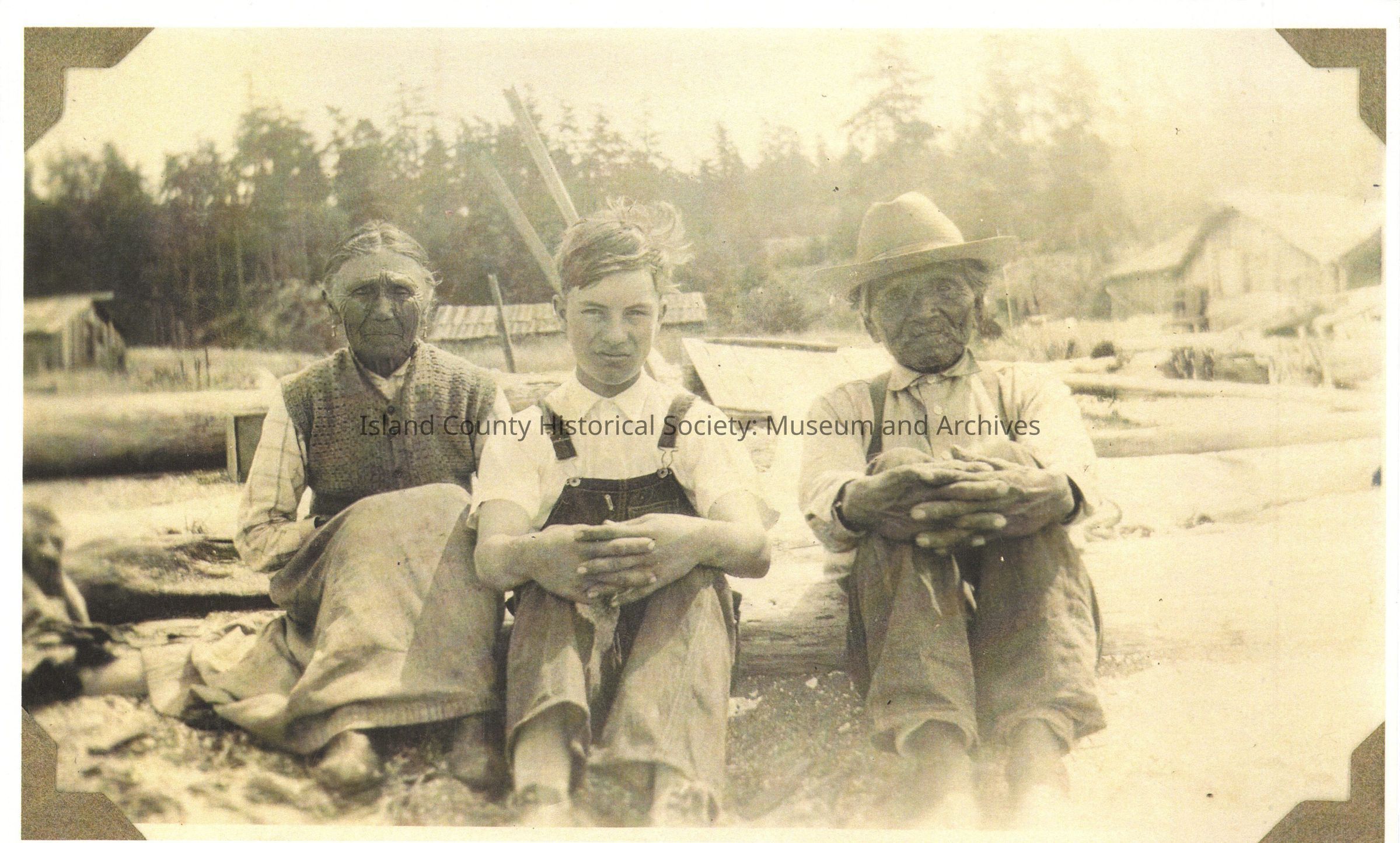 copy of large sepia photograph of Charlie and Mary Snakelum with unnamed young man in the middle