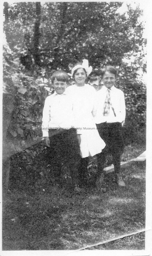 William, Marjorie and Bob Engle, Carl T. Engle's children. The three kids are standing together outside.