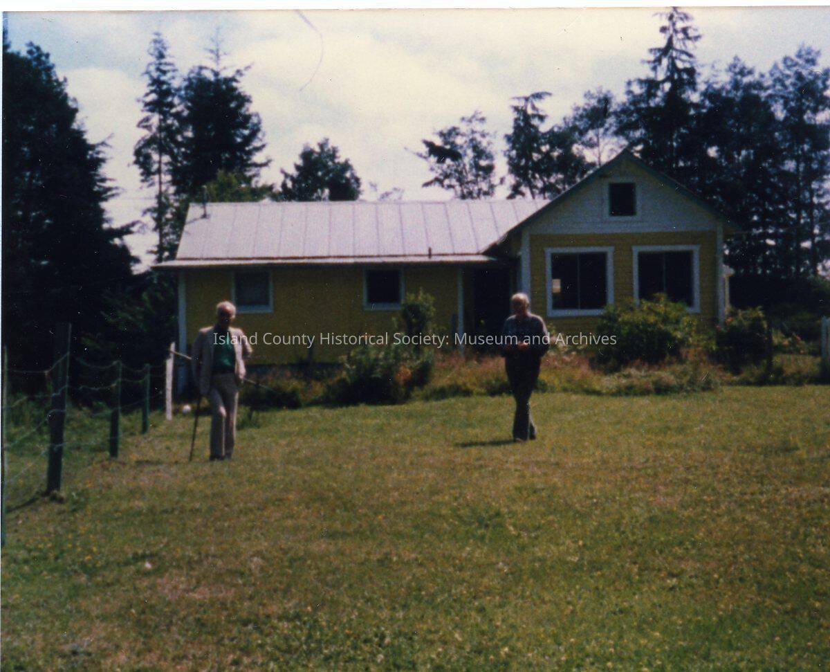 Walter Riston is on the left with Carl Anderson. This is the north side of the house likely taken in or around in 1980. House is painted yellow and white