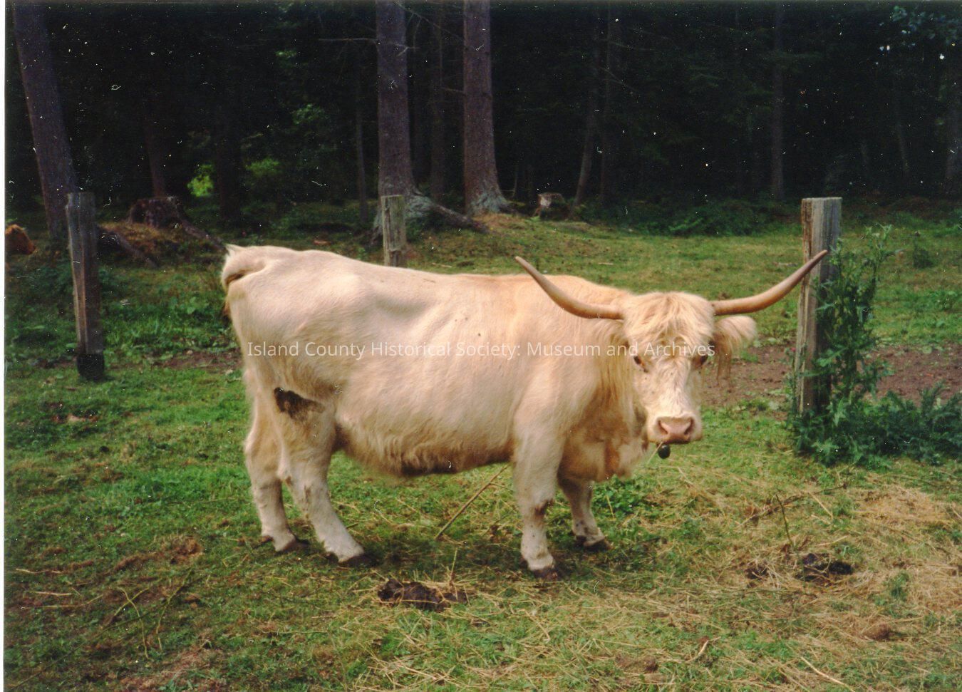 Glen and Jan Russel's bull (white, a little shaggy and with horns). The property is adjoined to the Maki and the Bakken property.