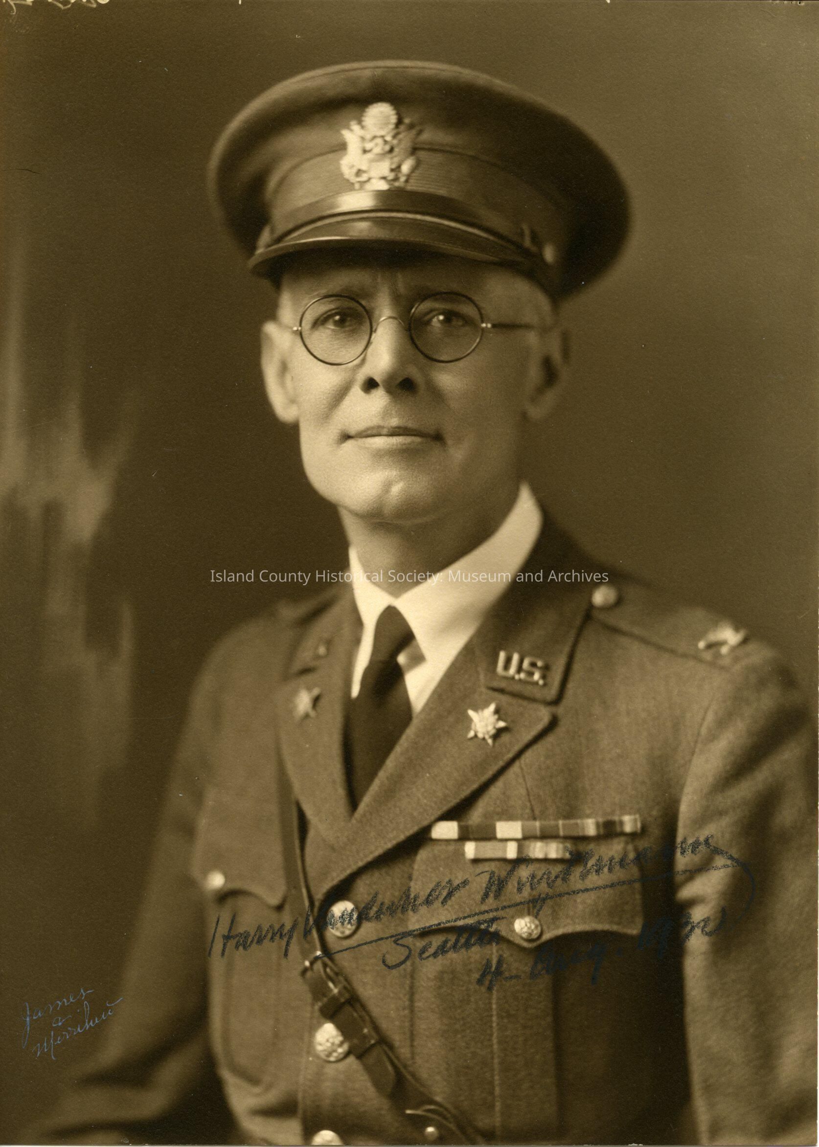 Portrait of an soldier in uniform. On the front: Harry Wederman Seattle 4 On the back: Dr. Wederman, 320 Stimson Beach DEL