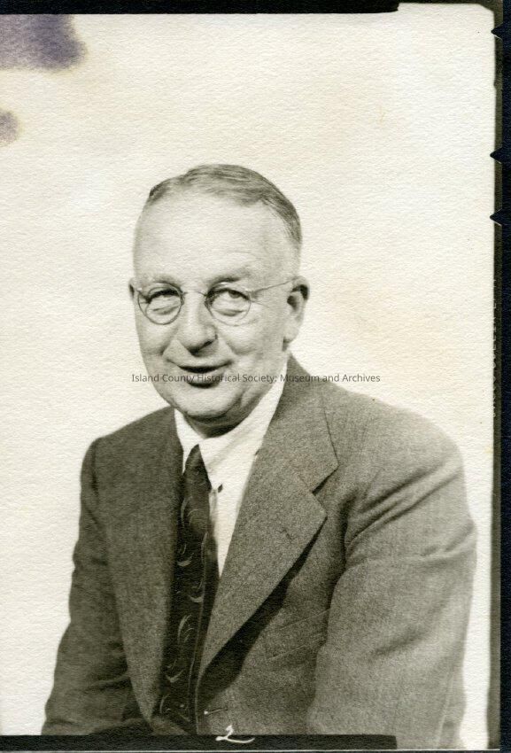 Portrait of an unidentified man most likely George Heap, smiling with his mouth slightly open.