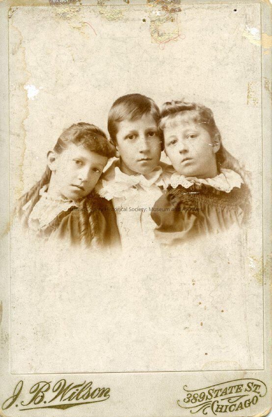 Family of H. S. Heap. From left:Mary Lillian Heap, George Ray Heap, Ethel Gertude Heap. Note on Photo: "Think these were taken when we lived at 4756 Langley Ave., Chicago"