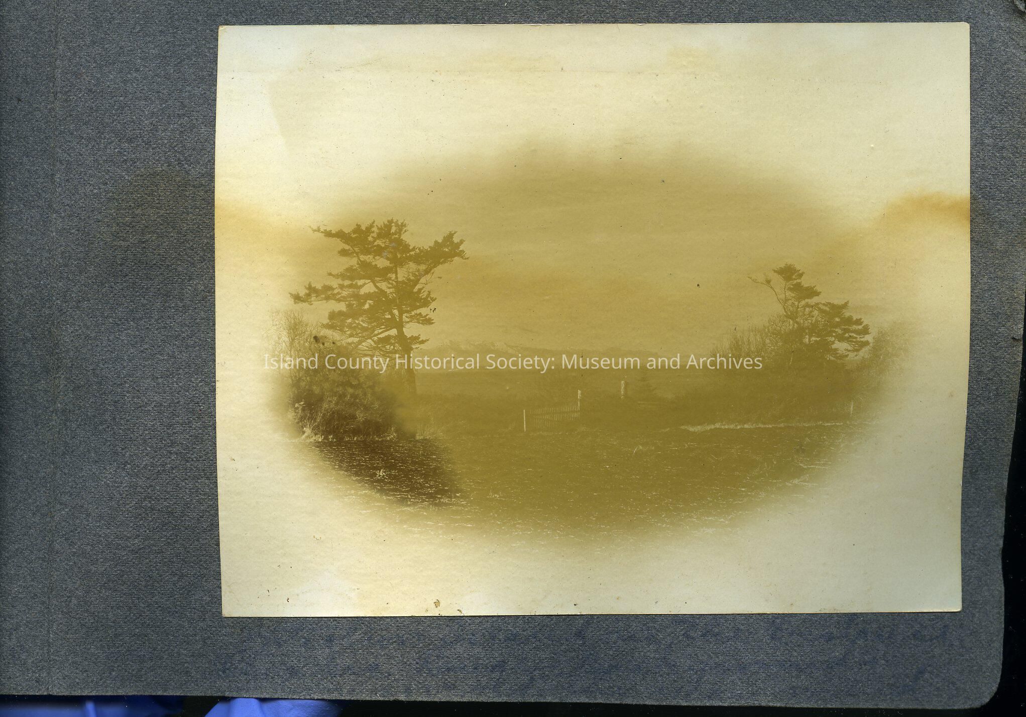 Mr. Abbott's field and fence with Olympic Mountains visible in background.
