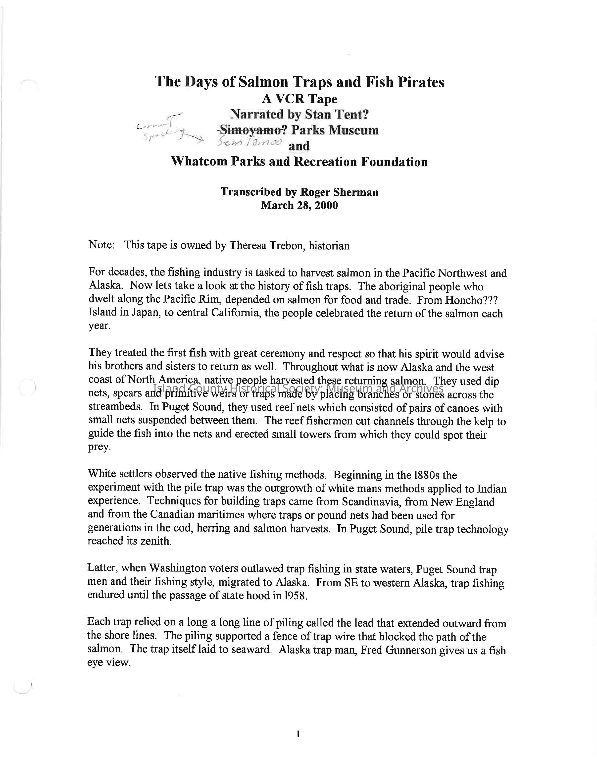 The Days of Salmon Traps and Fish Pirates VHS TranscriptionCreator