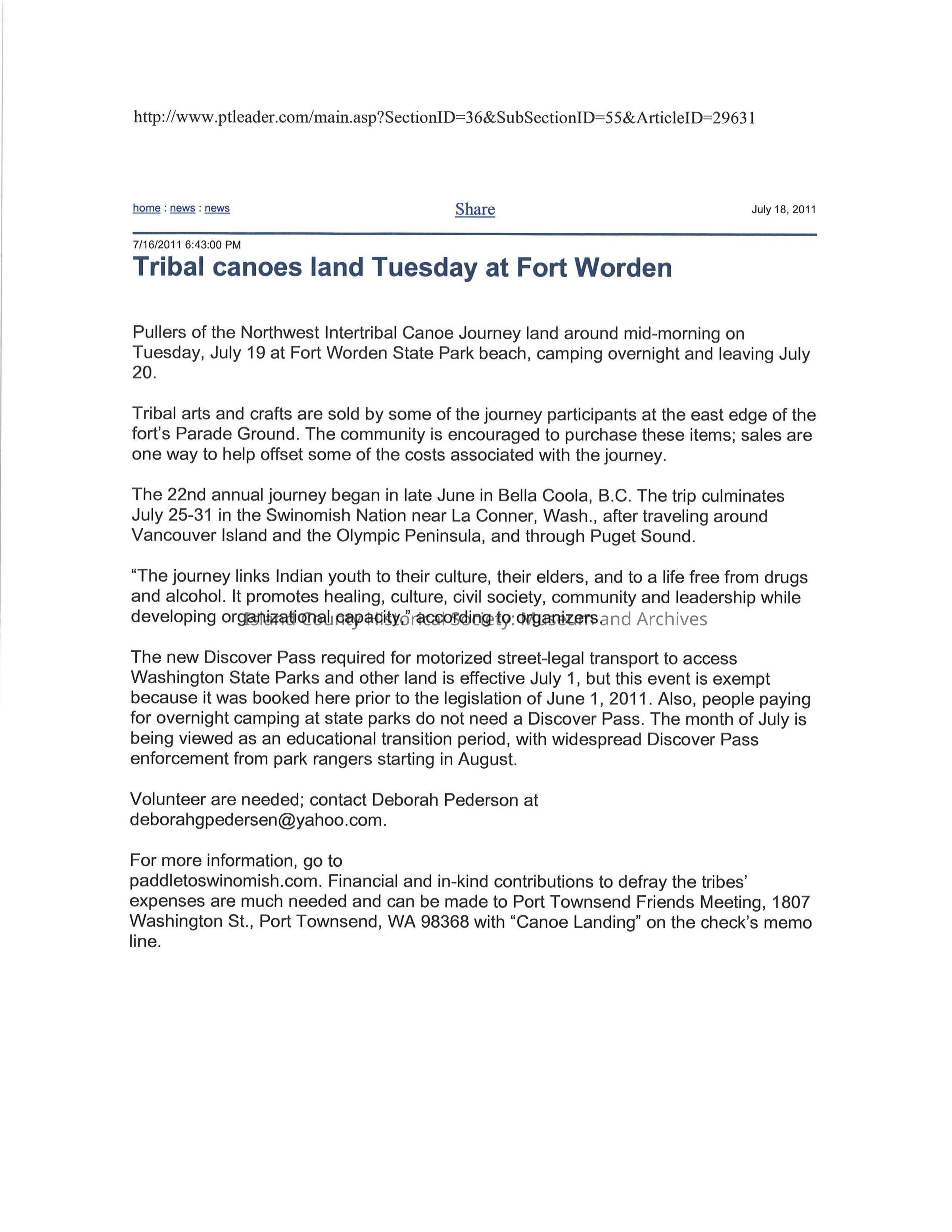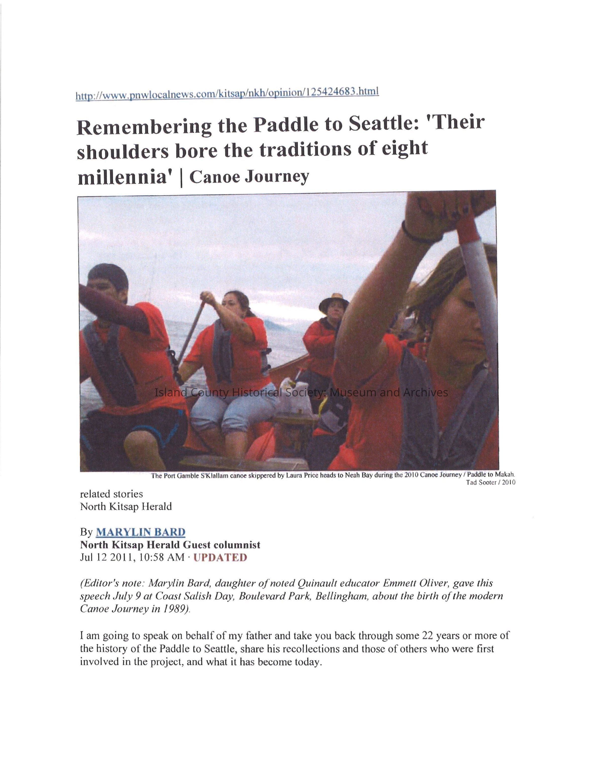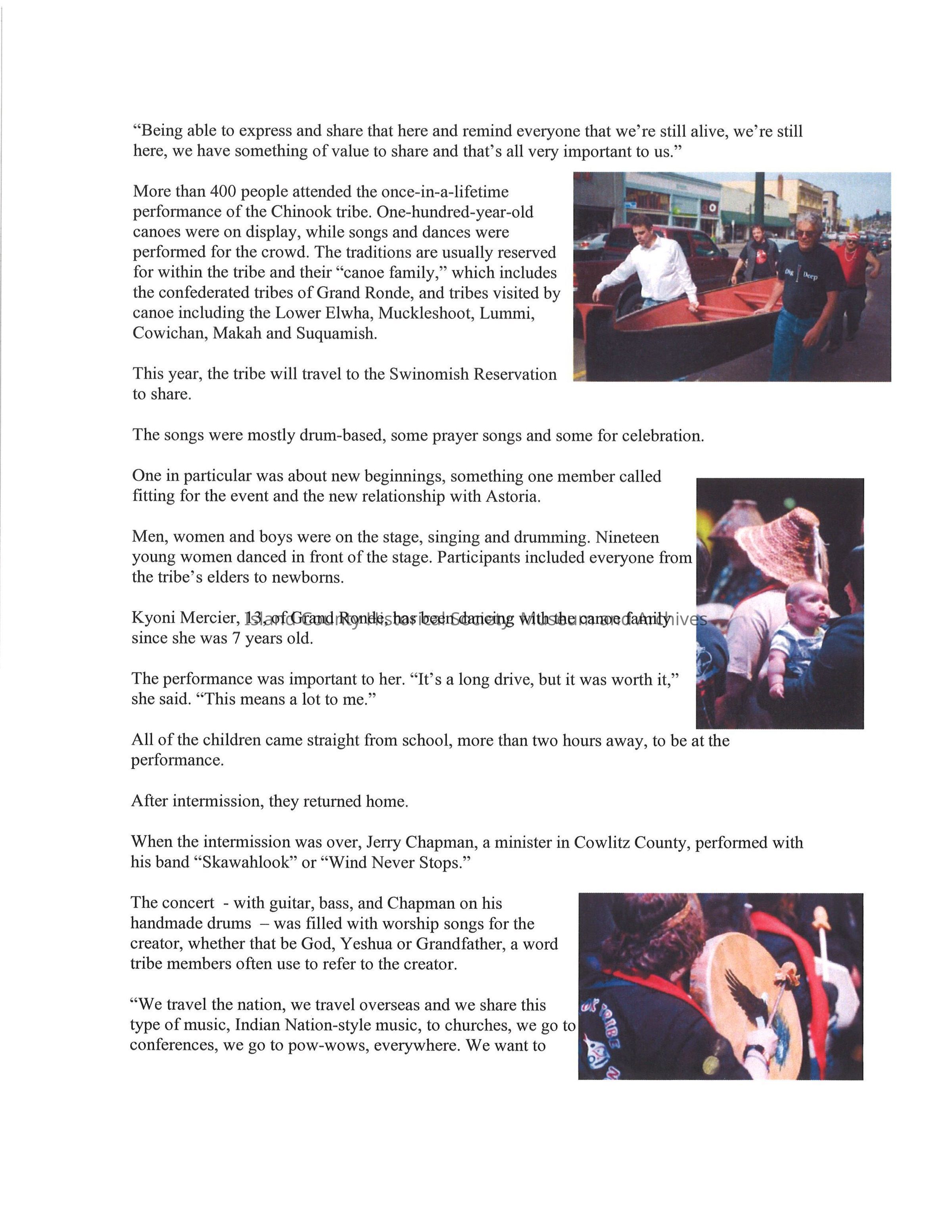 A collection of copies of newspaper articles and internet articles pertaining to Tribes of the Pacific Northwest