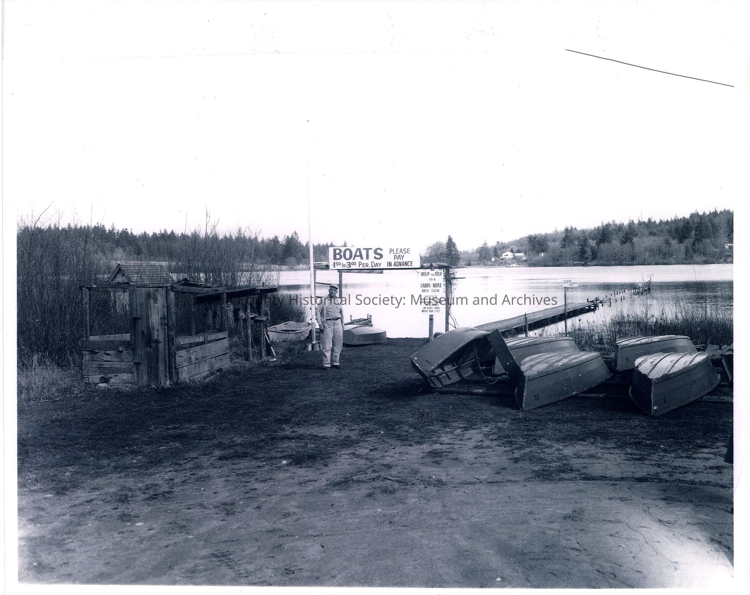 Opening Day of Fishing: April 14, 1957 at Deer Lake Resort. Owner James Klones 1950-1958. James was born in Crete in 1883. He died in 1958 and the property was sold at that time. He is buried at Langley Cemetary. He owned a small grocery store in downtown Seattle and in 1950 bought Deer Lake Resort which consisted of a log cabin, bait and snack ship and several small cabins.Made/Created