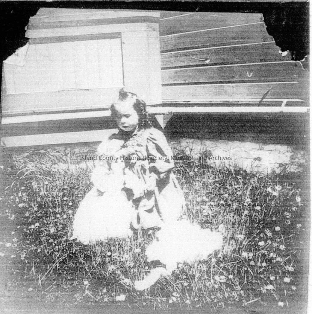 Vera as a very young child sitting in a patch of flowers playing with her doll.Made/Created